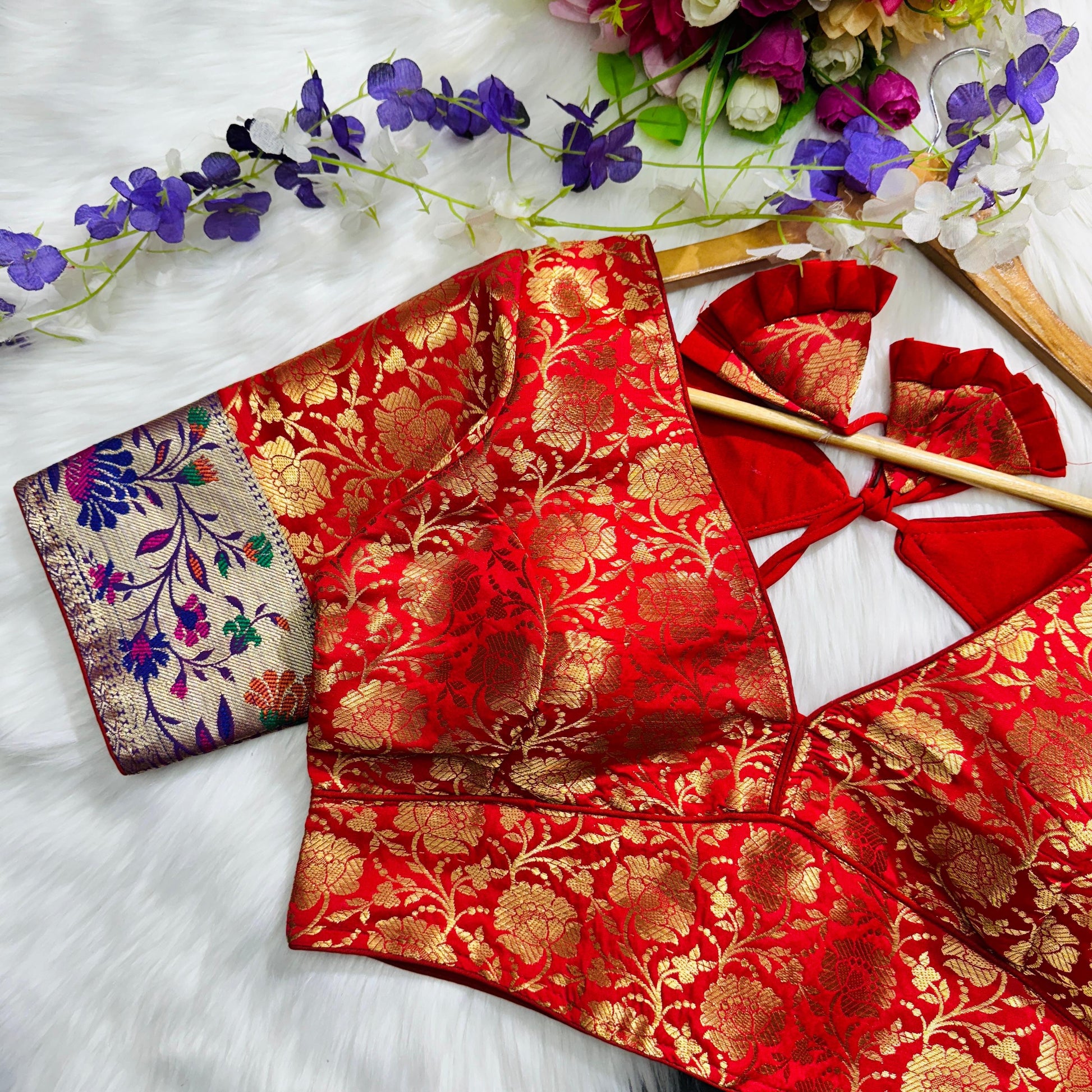 Pure Paithani Weaving Blouse with Multi Meena Work and Padded Comfort for Women