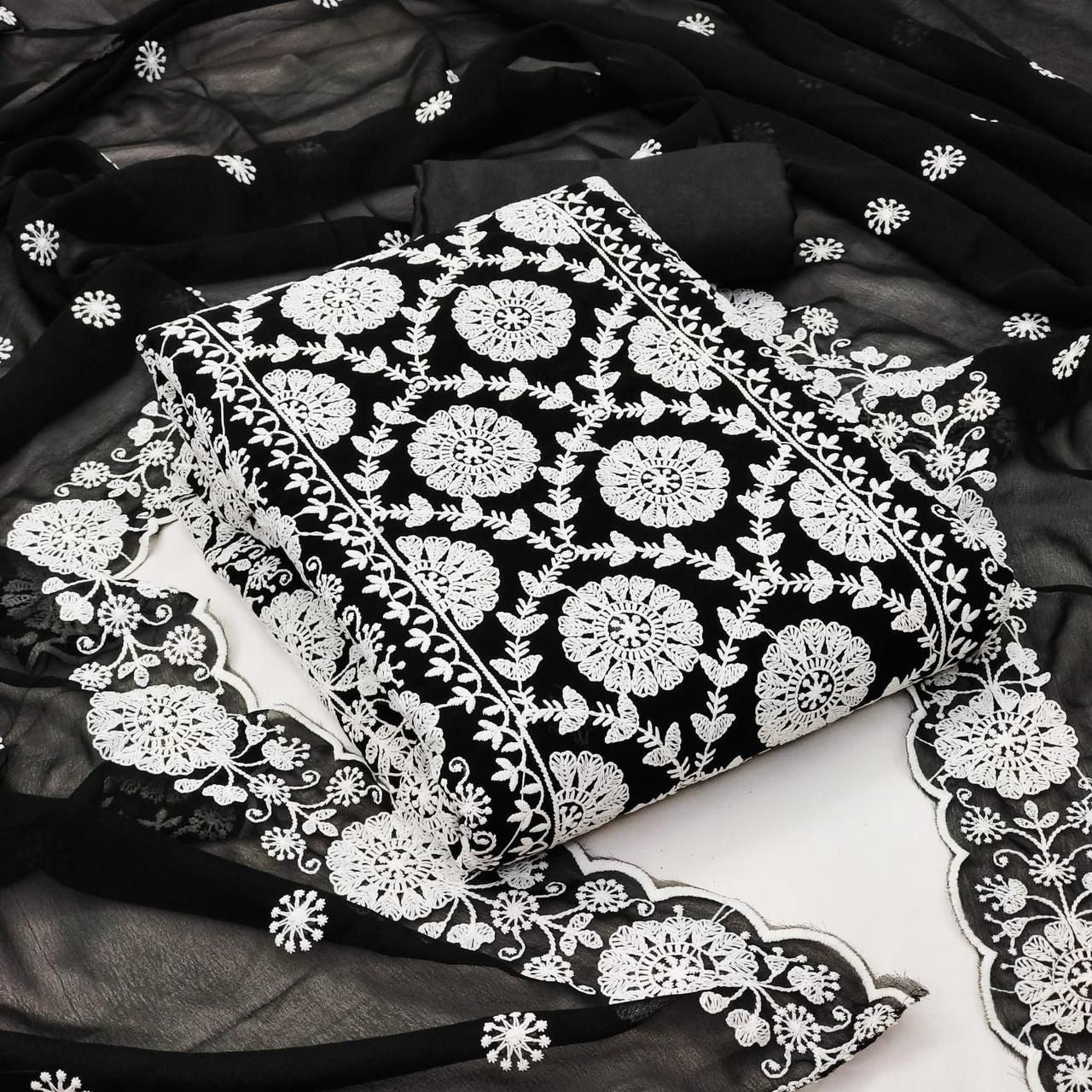Unstitched georgette dress material set, embroidered salwar kameez fabric, cotton dhaga work dress material, georgette suit set with shantoon bottom and dupatta