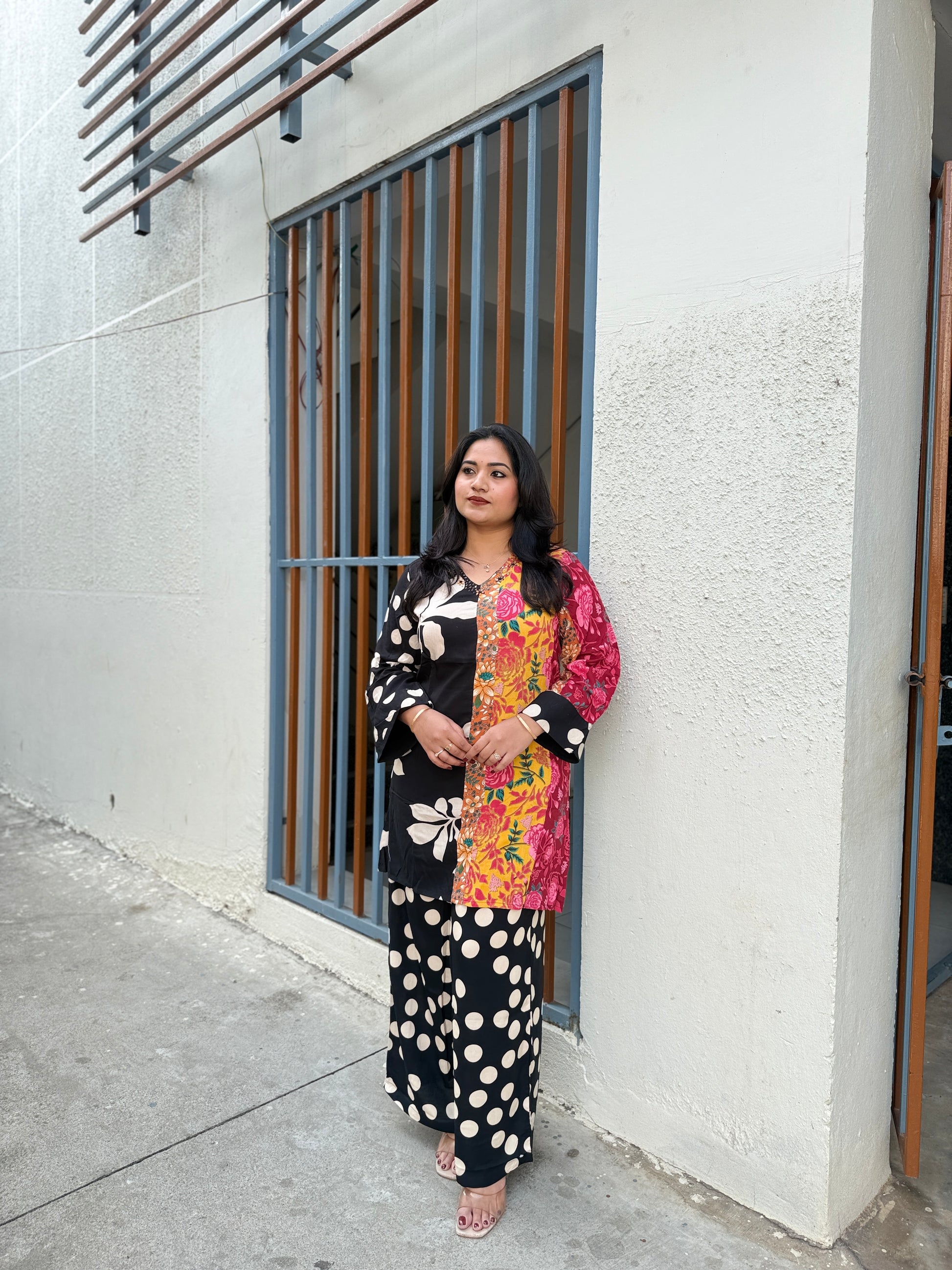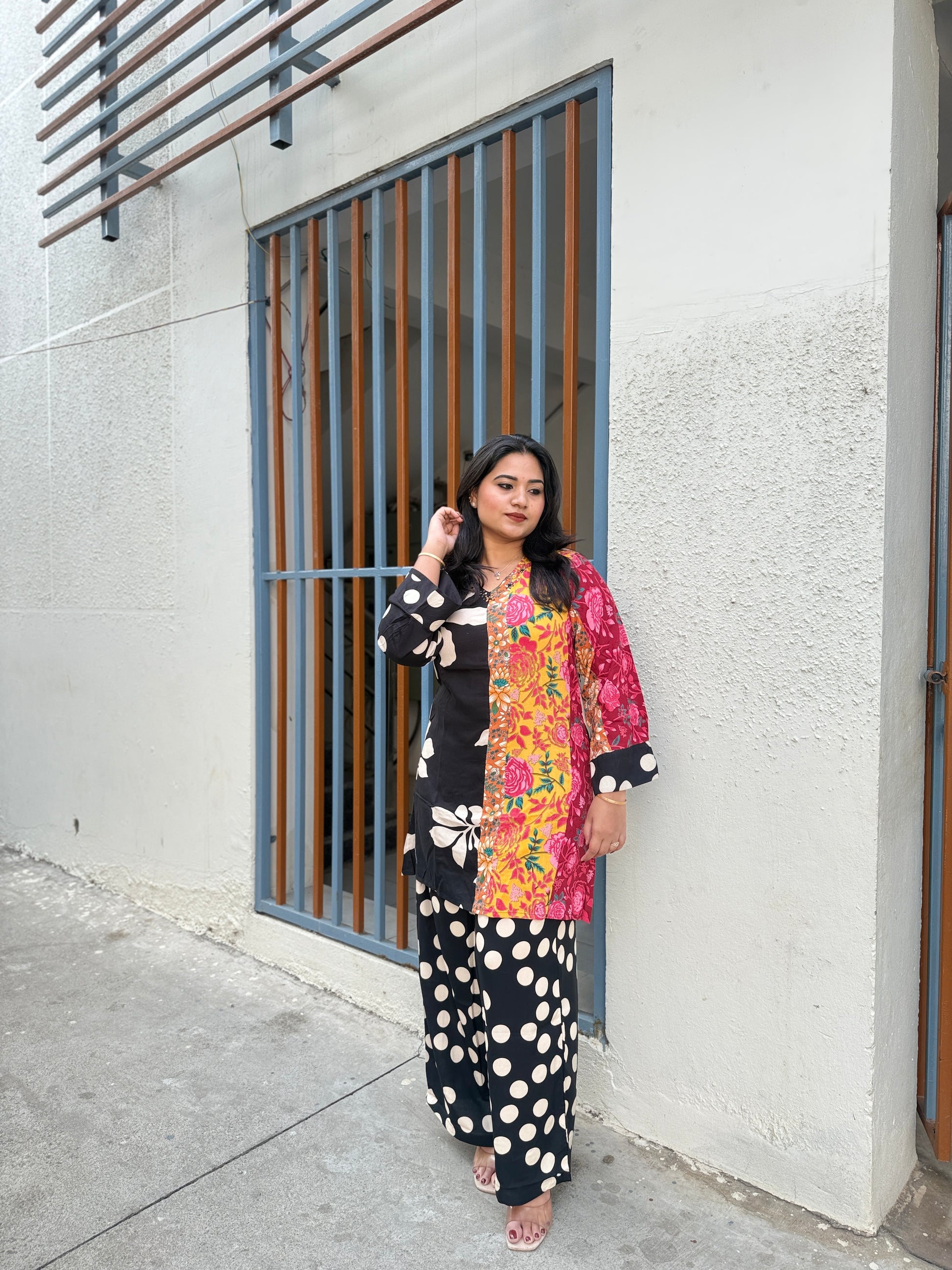 This kurta palazzo set is crafted from smooth and breathable German rayon, designed for everyday comfort with a refined ethnic look. The kurta features a straight silhouette with carefully placed printed and detailing work that adds visual depth without overpowering the design.