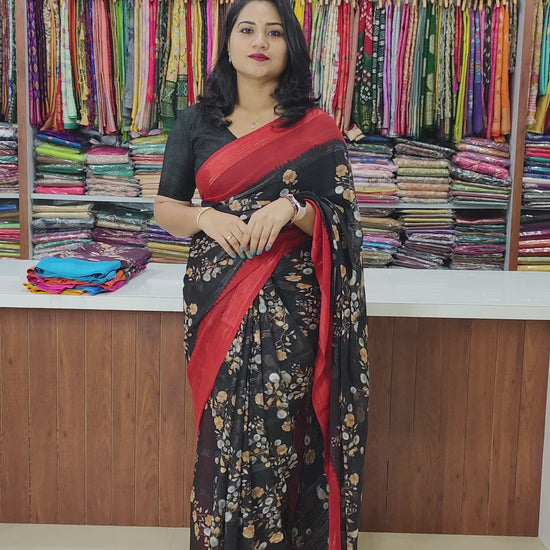 Chiffon Jari Saree with All-Over Floral Print & Contrast Printed Border – Blouse Options Available