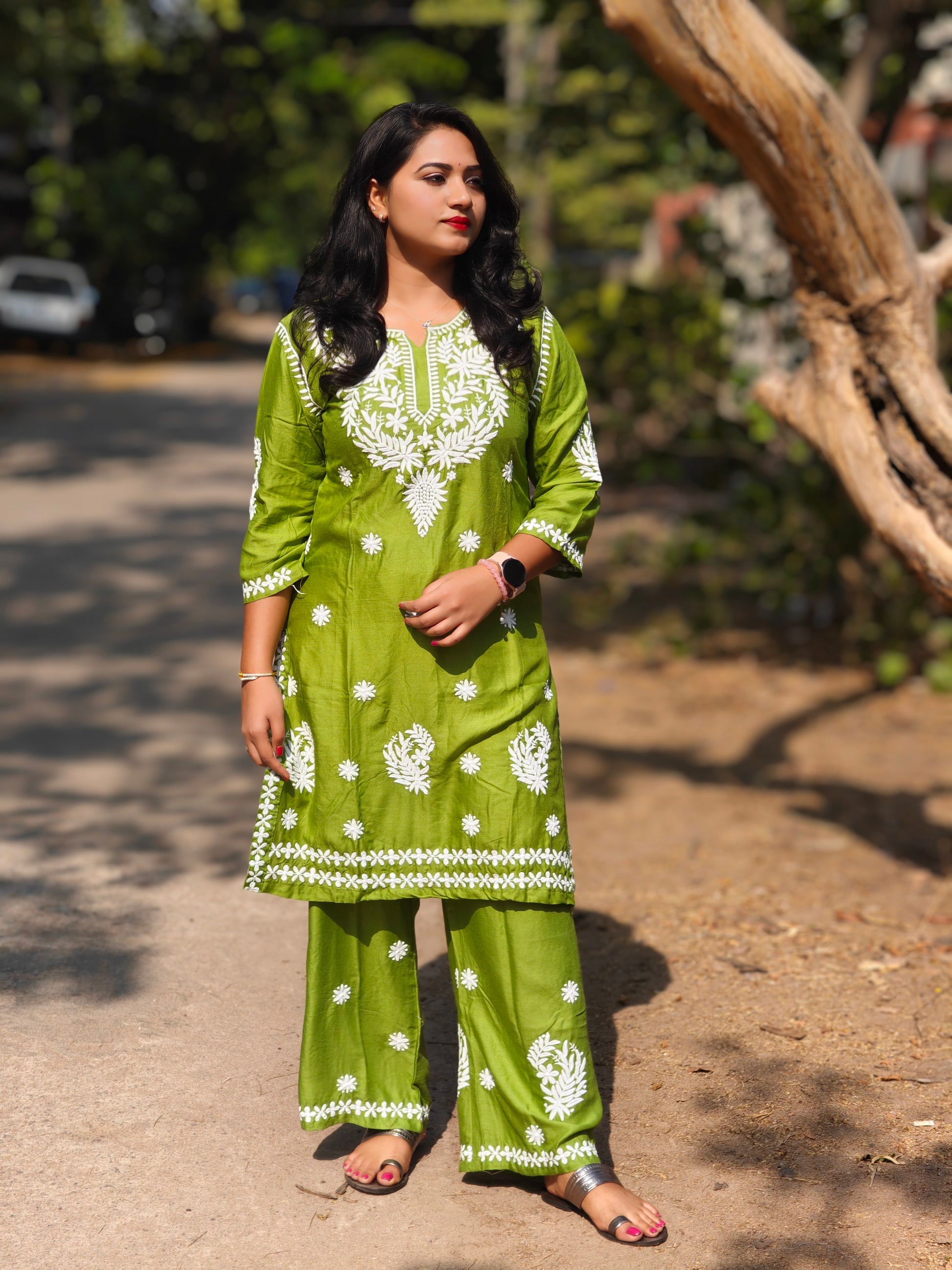 Experience the rich heritage of Lucknowi embroidery with this elegant green chikankari top and bottom set for women. Handcrafted with meticulous detailing, the kurti features delicate threadwork that celebrates timeless artistry. Made from soft, breathable cotton, this ensemble is ideal for festive occasions, casual outings, or ethnic workwear. The set includes a beautifully embroidered straight-fit top and coordinated bottom, both designed for all-day comfort and graceful style. Its handcrafted charm and soothing green tone make it a versatile choice for those who appreciate traditional craftsmanship with modern appeal.