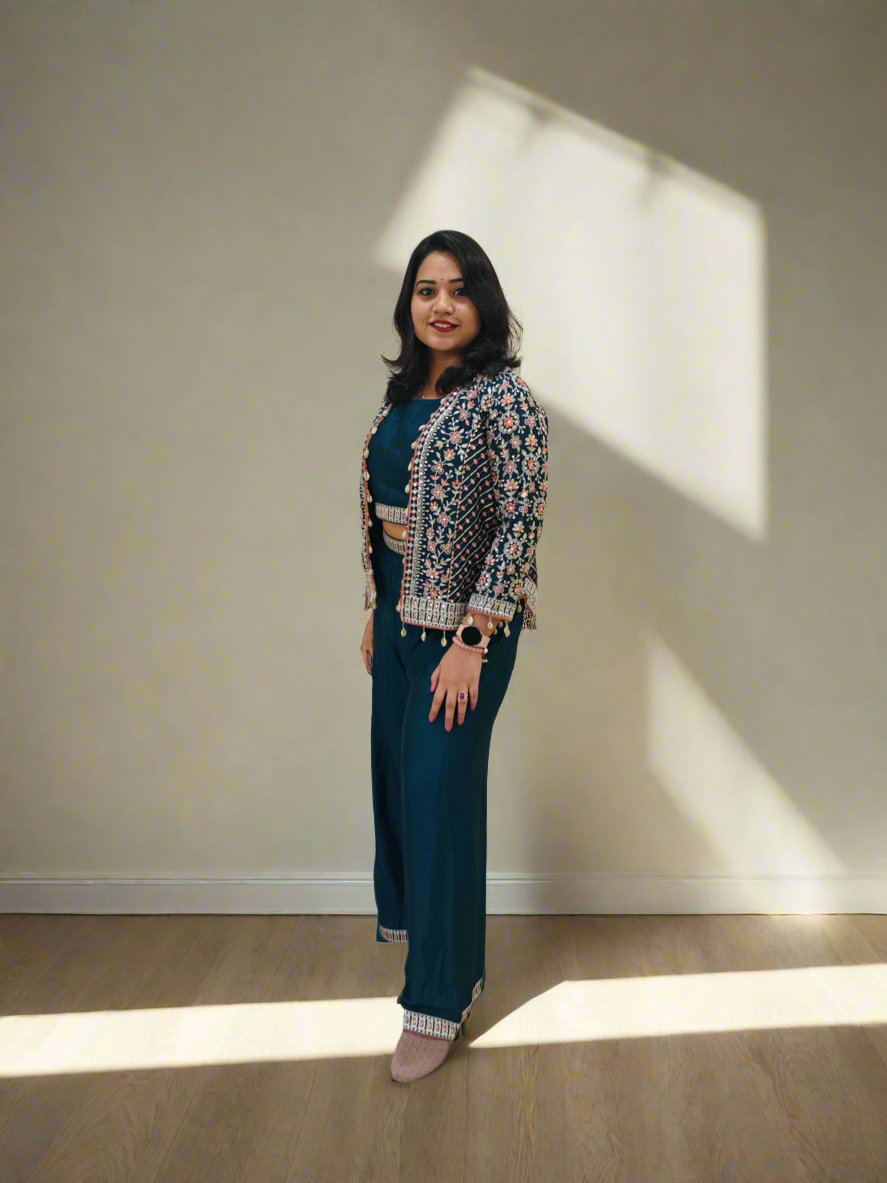 Indulge in elegance with Mariyam, a beautifully crafted set designed with premium quality fabrics and exquisite details.