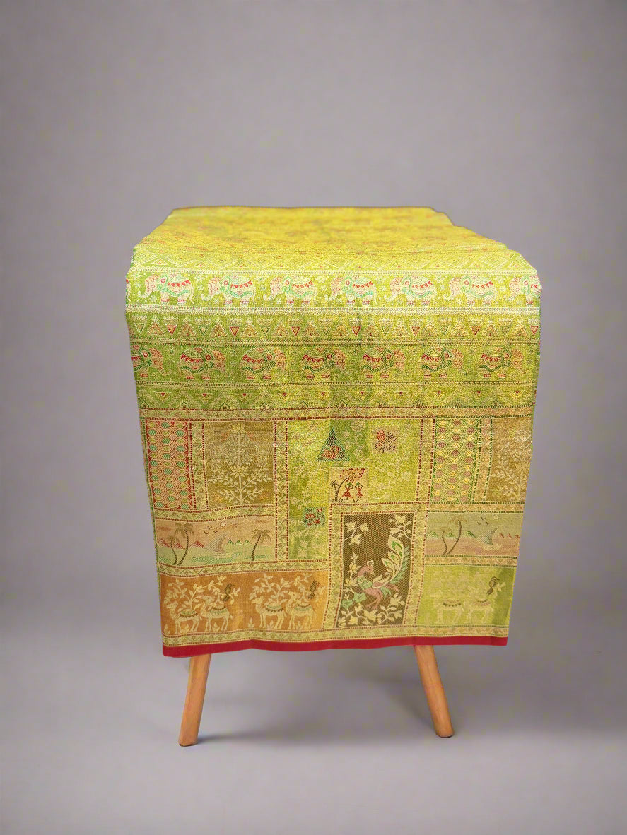 - Style: Edge-to-edge zari design, heavy weave saree