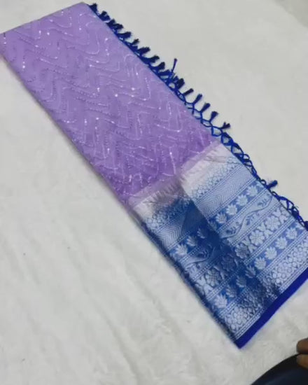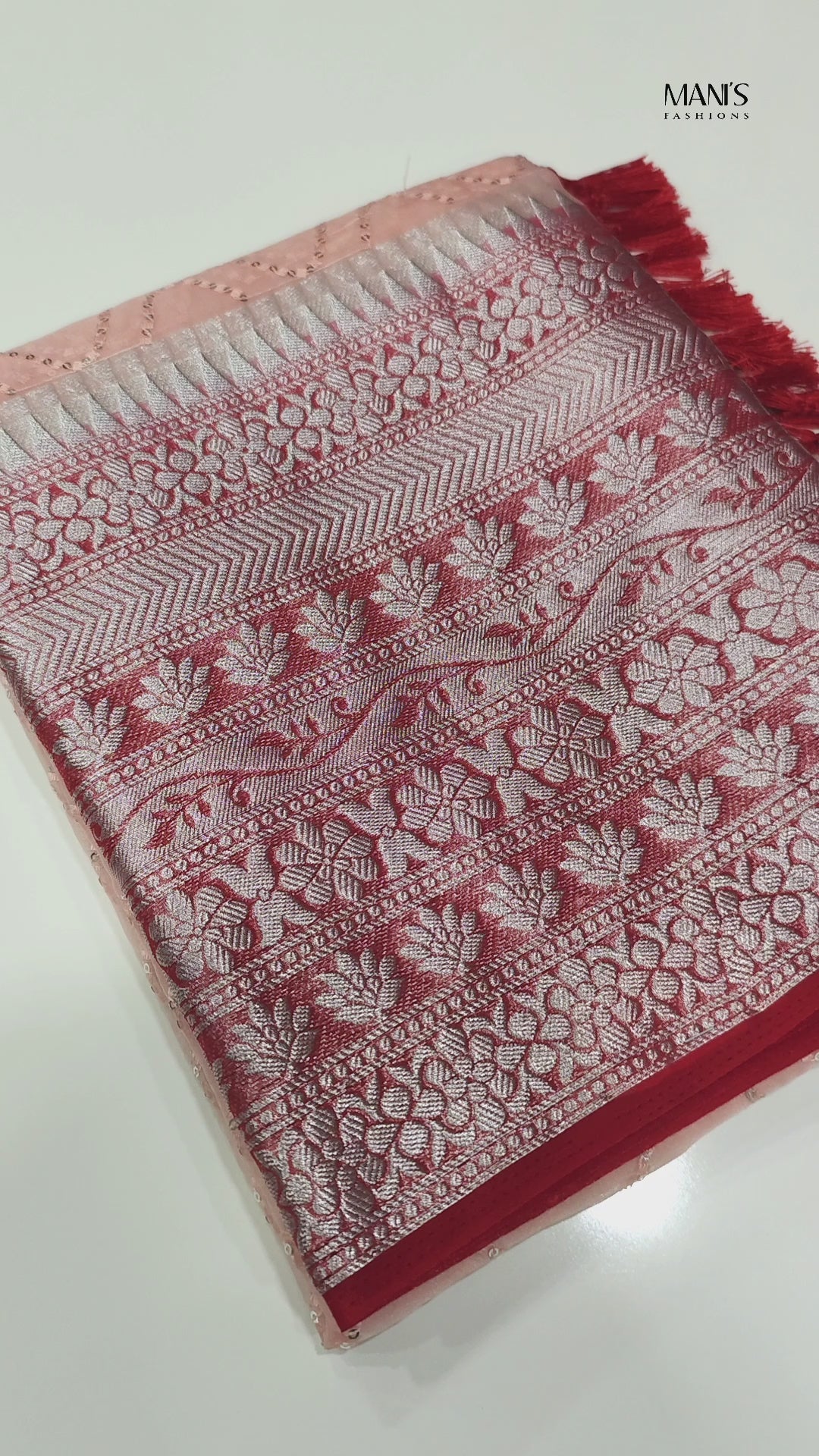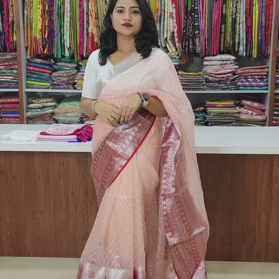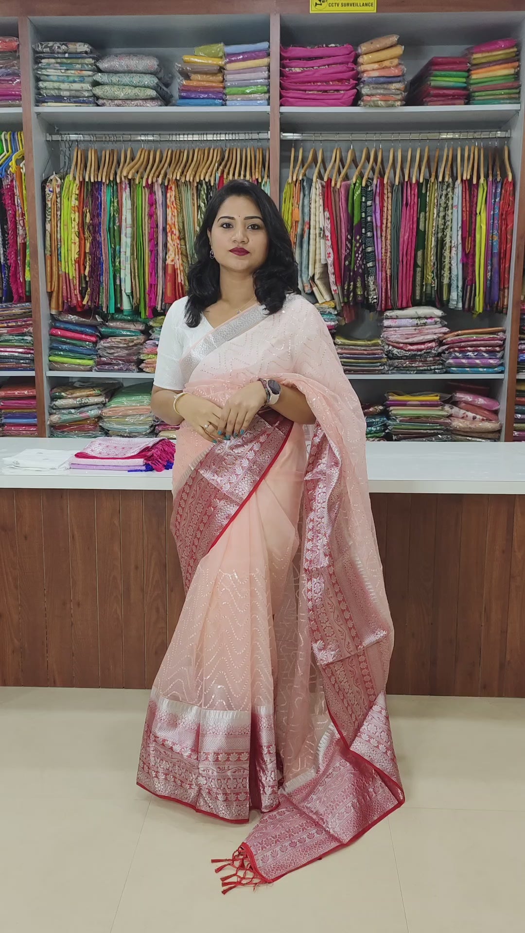 Technical Details: Saree crafted with sheer organza texture and finely woven viscose thread designs