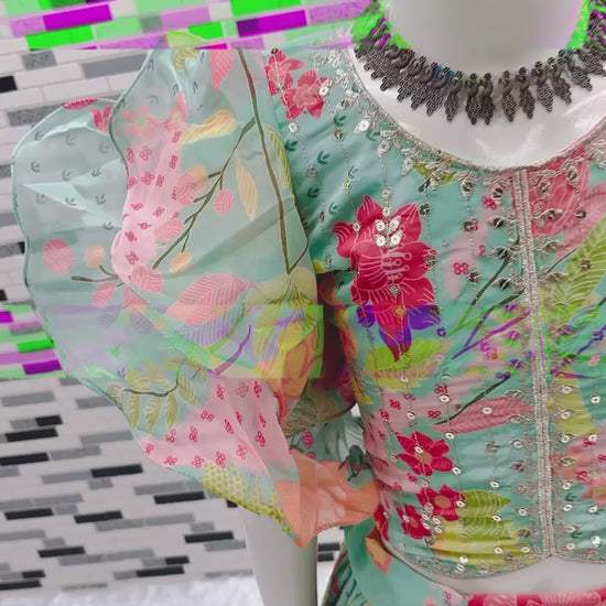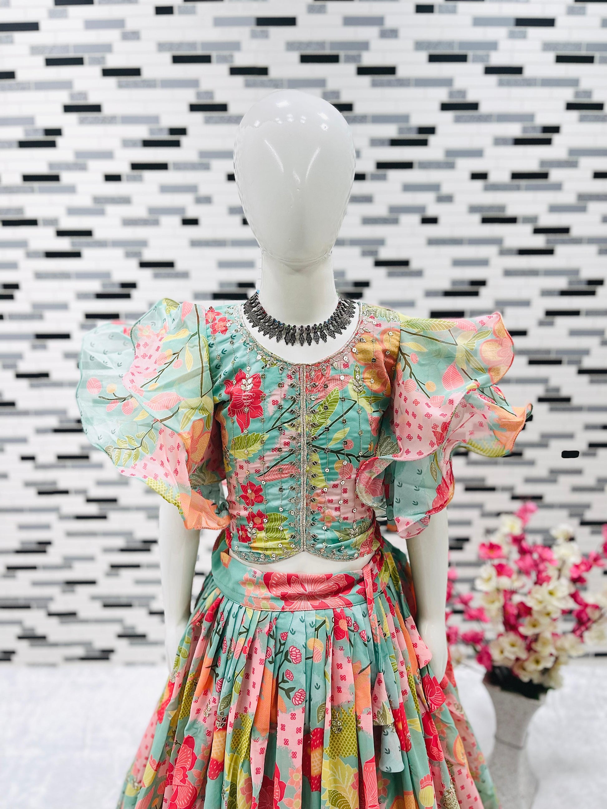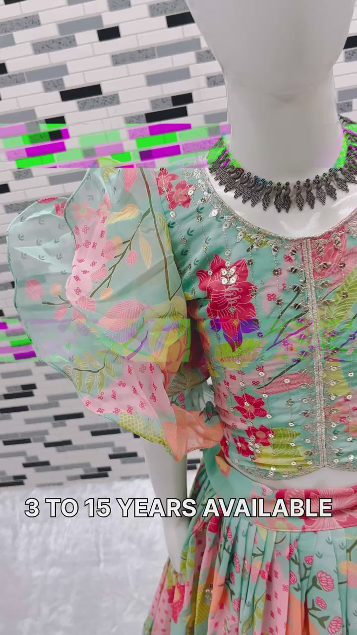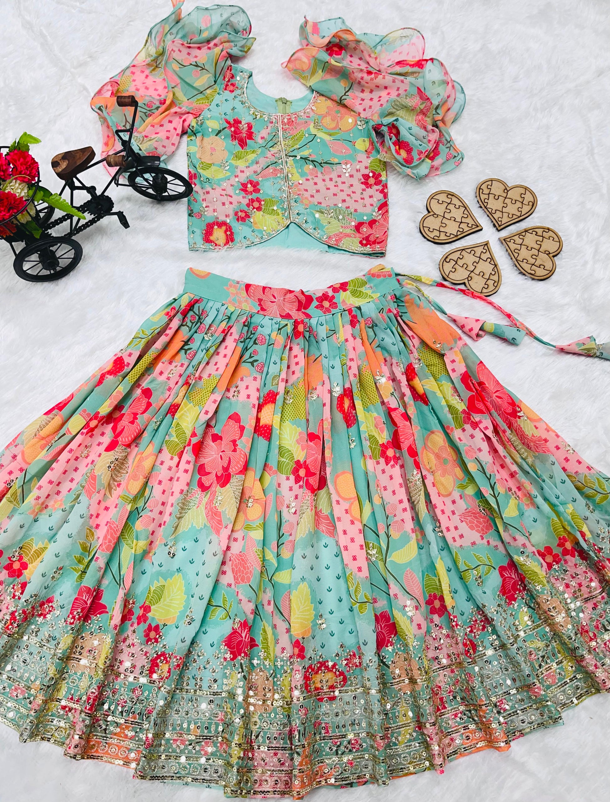 Girls’ Heavy Fox Georgette Lehenga Choli with Digital Print and Sequins Embroidery – Stitched Kids Ethnic Wear