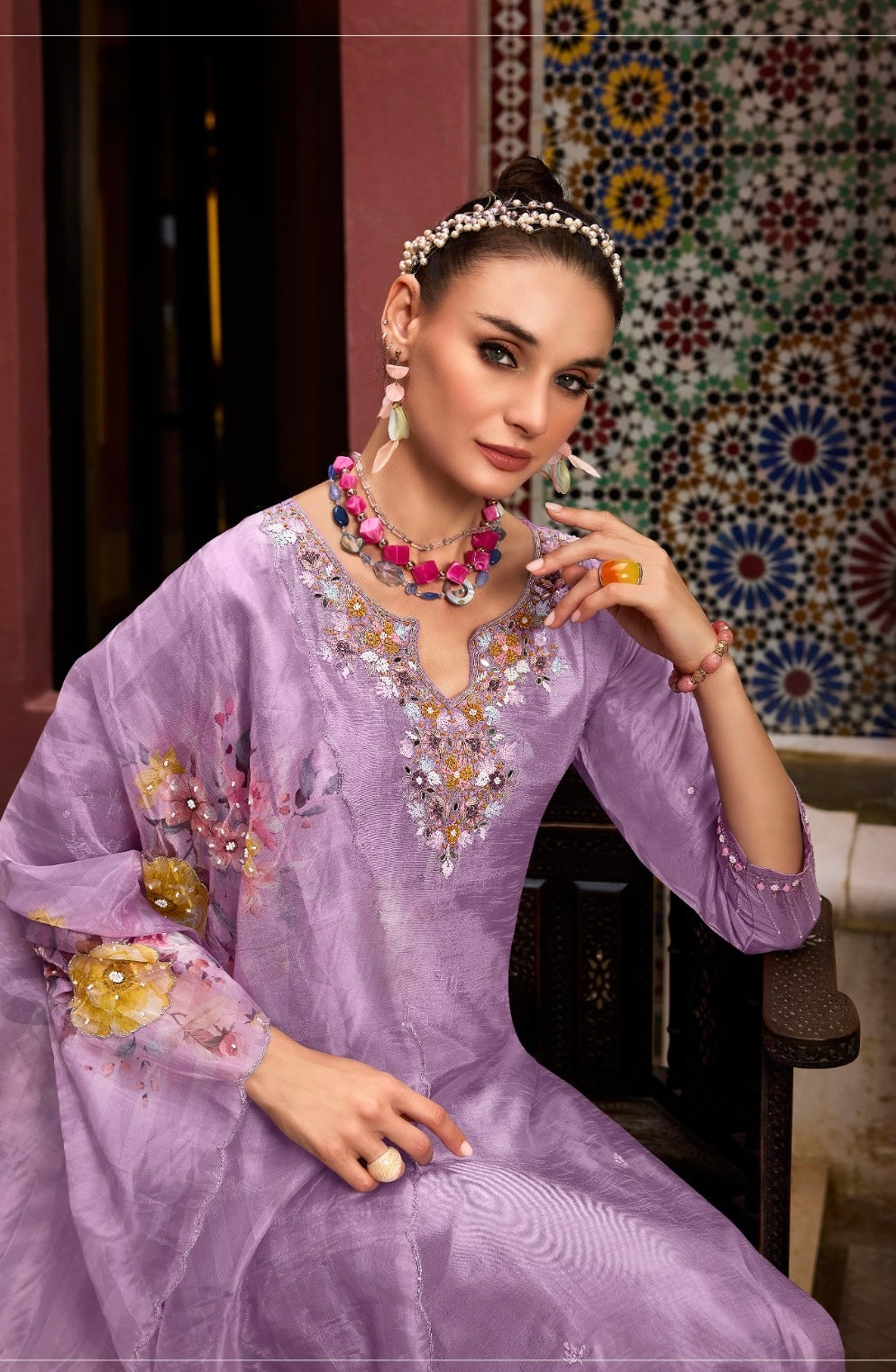 This premium 3-piece ethnic suit set features a pure dola silk kurti and pant paired with a rich organza dupatta showcasing vibrant digital prints. The kurti is adorned with intricate pure heavy handwork, offering a handcrafted touch that elevates the ensemble for festive, wedding, and party occasions. Designed for style and comfort, this stitched kurti set is available in M to XXL sizes and is perfect for women seeking a refined ethnic silhouette for special gatherings.