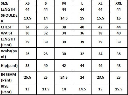 Components: 1 calf-length top + 1 matching bottom (2-piece set)