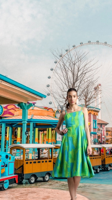 This lime green cotton A-line midi dress brings a refreshing pop of color to your summer wardrobe. Crafted from breathable cotton, it features a flattering sleeveless design and a softly flared A-line silhouette for easy movement. The lightweight fabric ensures all-day comfort, while the vibrant lime tone adds a playful, youthful vibe. Perfect for vacations, brunches, and casual day outings, this dress pairs effortlessly with flats, sandals, or sneakers for versatile styling.