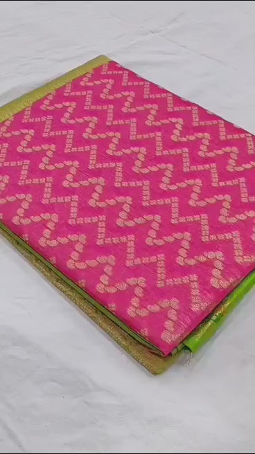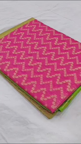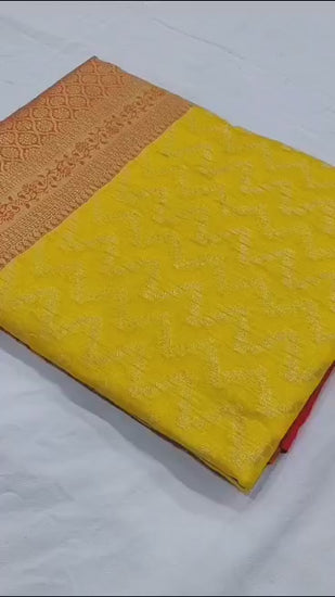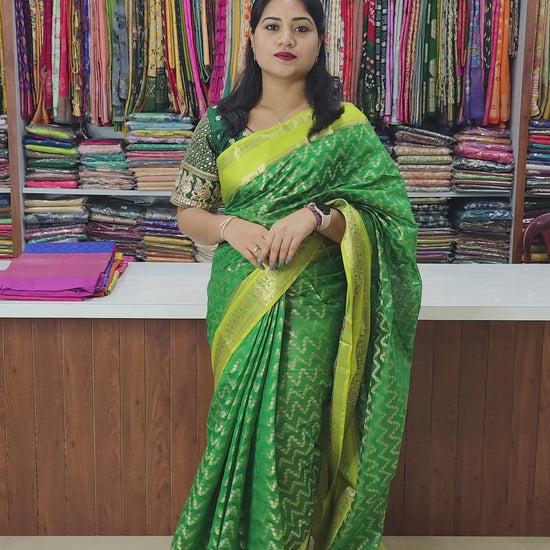 Mangalgiri Tissue Saree with Floral Design, Zari Rich Pallu, Big Border, and Contrast Blouse Piece for Women
