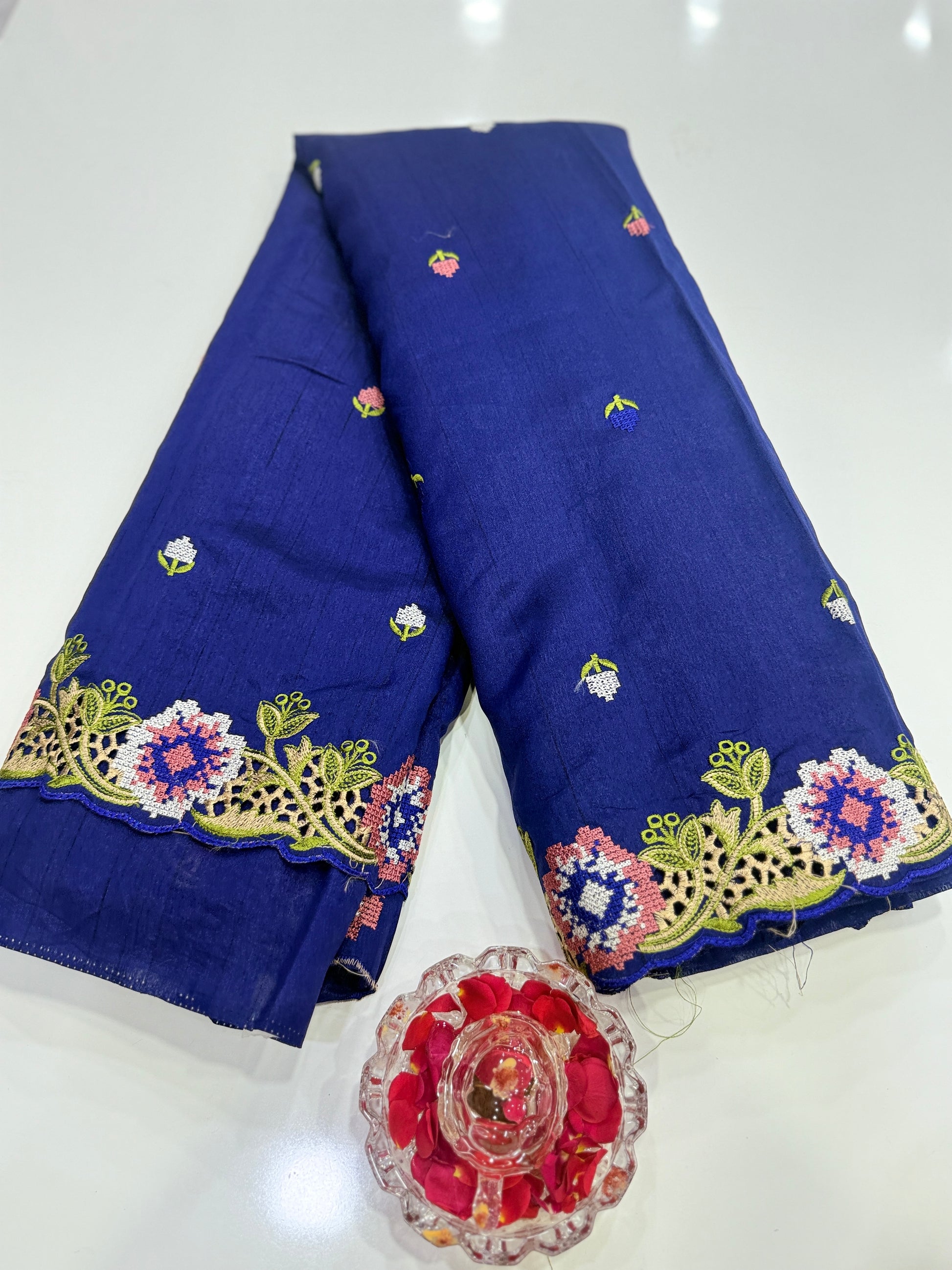 • Fit & Style: Traditional drape with artisanal embroidery and cutwork detailing.