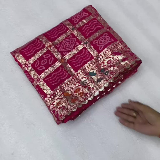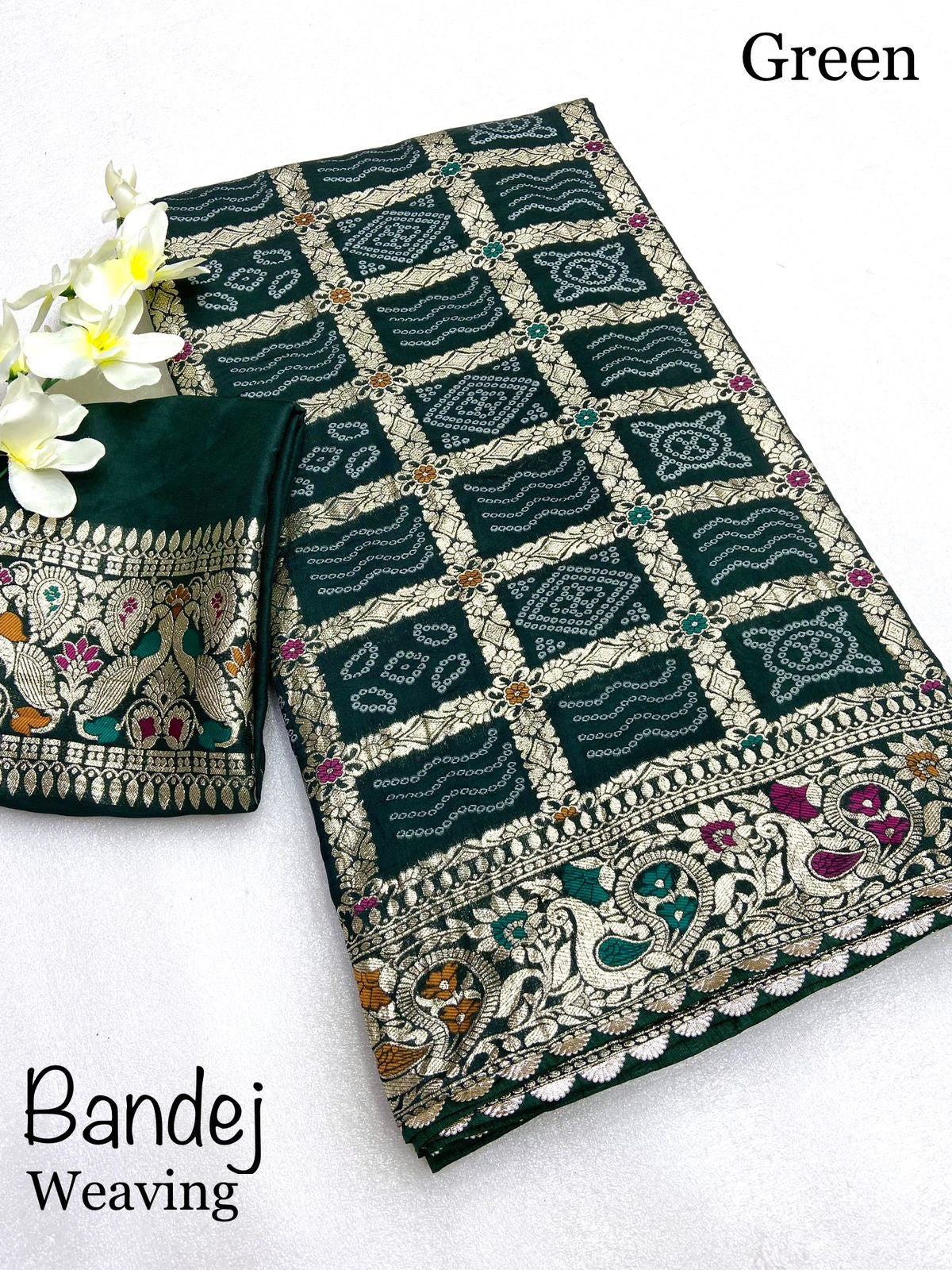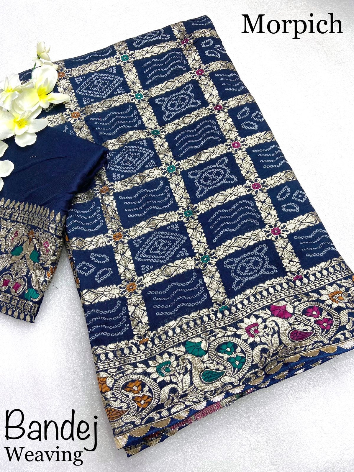 Viscose Silk Bandej Saree with Meenakari Weaving, Heavy Pallu and Lace Border – Festive Wear