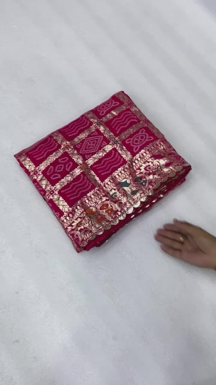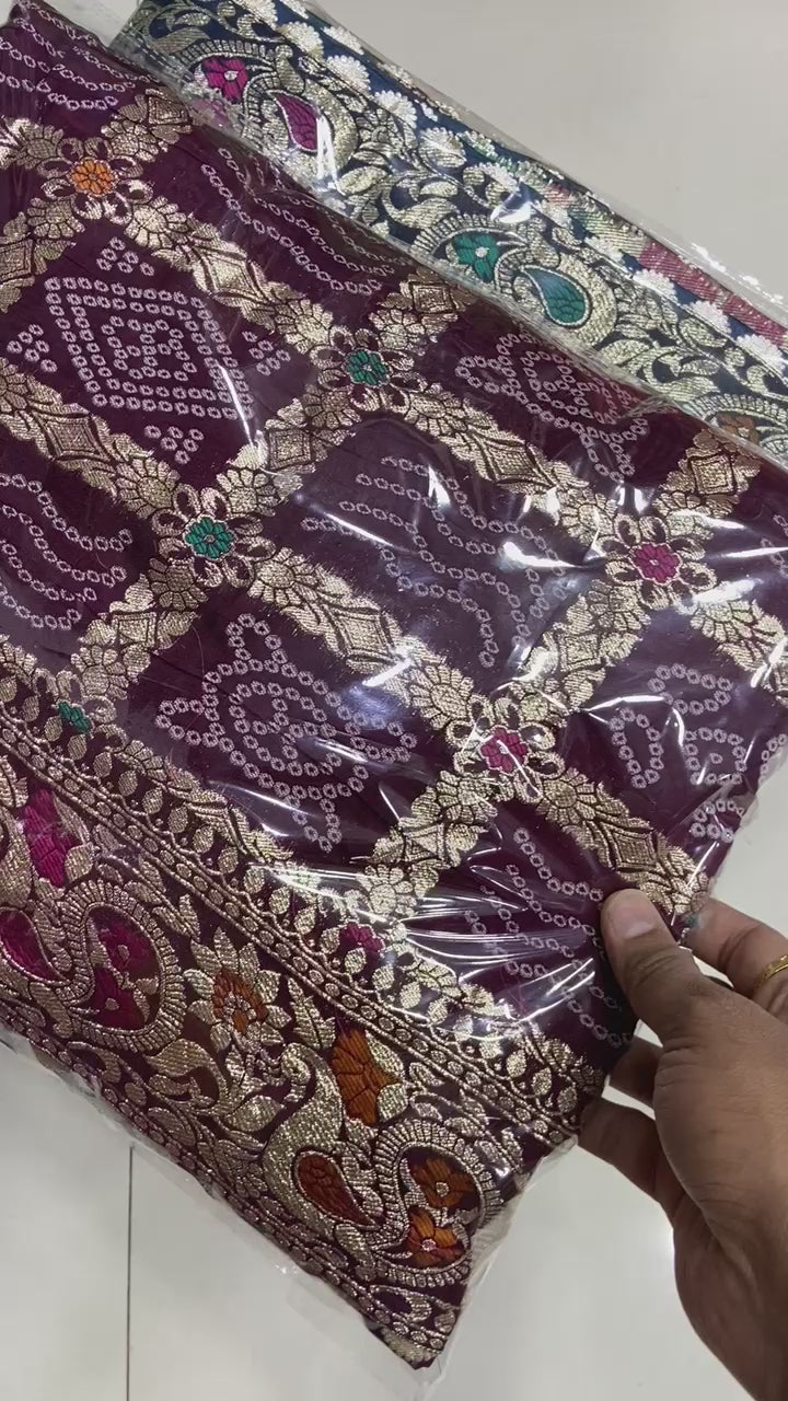 The Viscose Meenakari Bandej Saree is a graceful fusion of traditional artistry and refined elegance. Featuring classic Bandej tie-dye patterns, the saree is elevated with intricate Meenakari weaving that adds richness and depth to the design. The heavy pallu is adorned with detailed Meena work, exuding grandeur, while a delicate lace border completes the ensemble with a touch of sophistication. Each saree comes with a matching weaving blouse piece, ensuring a coordinated and refined look. Perfect for weddings, festive occasions, and cultural celebrations, this saree captures the timeless charm of Bandej craftsmanship and the regal beauty of Meenakari weaving.