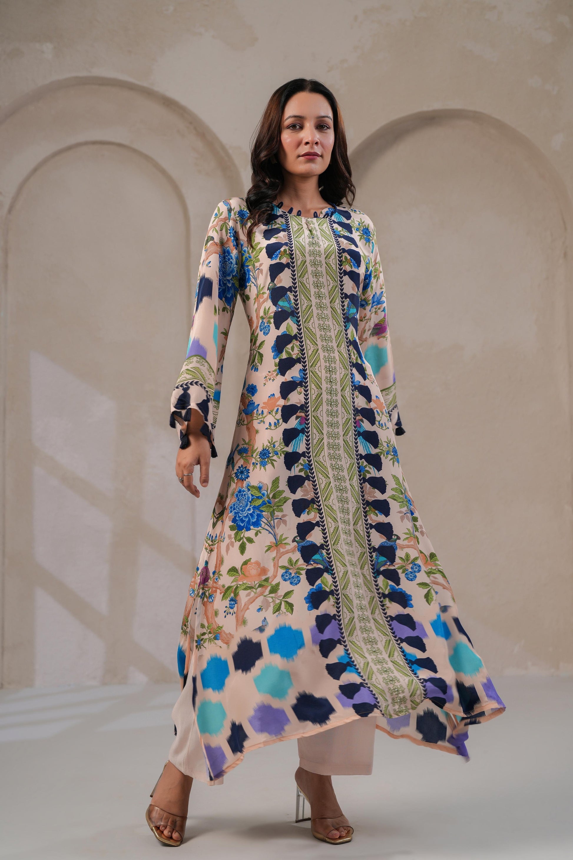 Digital Print Crepe Kurta Pant Set for Women with Tassel Detailing and Shantoon Bottom