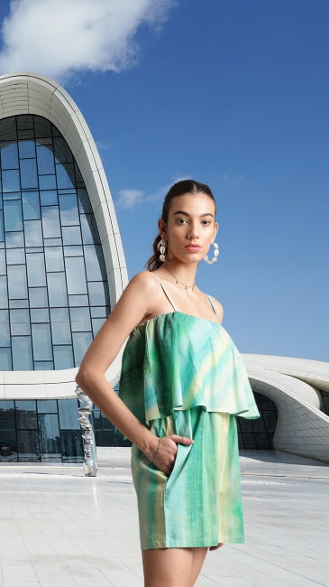 Add a breezy, modern touch to your summer wardrobe with this multicolor cotton layered jumpsuit for women. Designed with comfort and style in mind, this outfit features a relaxed silhouette, spaghetti straps, and a tiered overlay bodice. Crafted from breathable cotton in a gradient of cool tones, it’s perfect for vacations, brunch dates, or laid-back summer evenings. Fully stitched and easy to wear, this piece brings both flair and functionality to your warm-weather outfits.