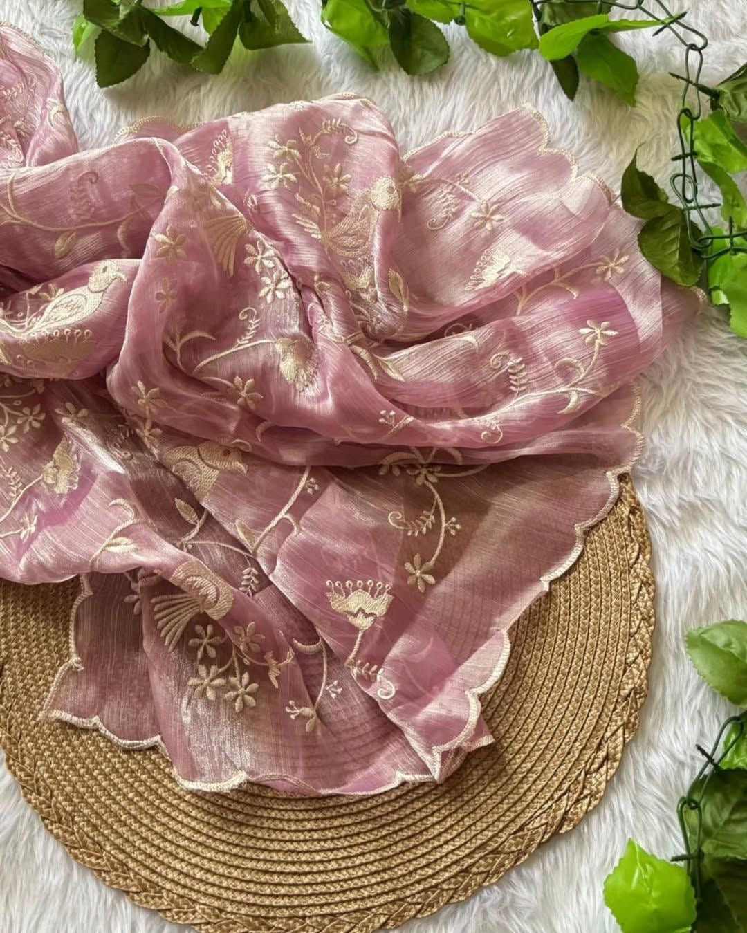 This women’s embroidery saree is crafted from soft fabric with delicate chikankari-inspired work, designed to give an elegant and graceful drape. The saree features a C-pallu style that enhances its fall and flow, making it ideal for festive occasions, parties, and special gatherings. Paired with a matching embroidery work blouse, this ensemble blends traditional artistry with contemporary sophistication. Its soft fabric ensures comfort while maintaining a refined look, making it a versatile addition to any wardrobe.