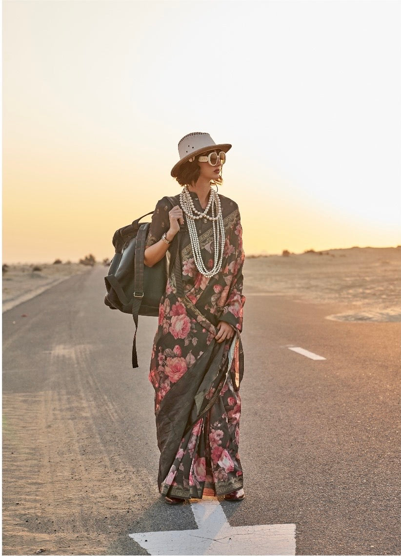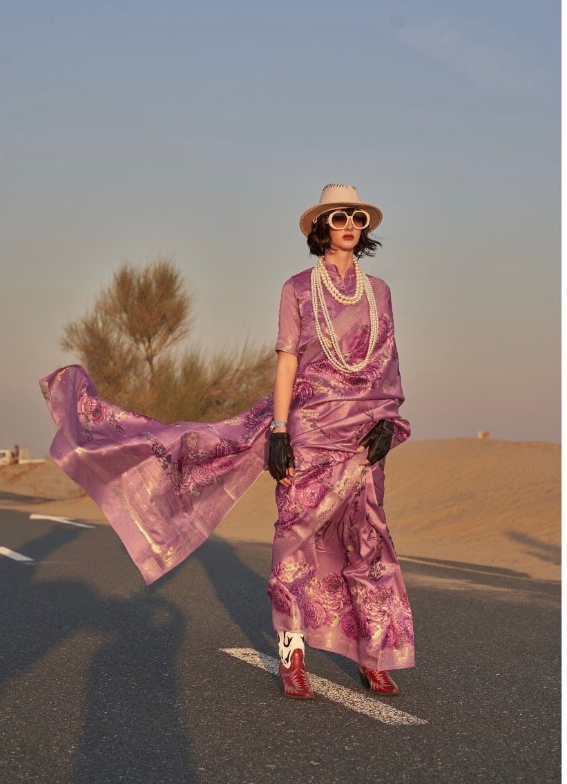 SEO Keywords: Handwoven Tussar silk saree, printed silk saree with blouse, festive silk saree for women, traditional silk drape