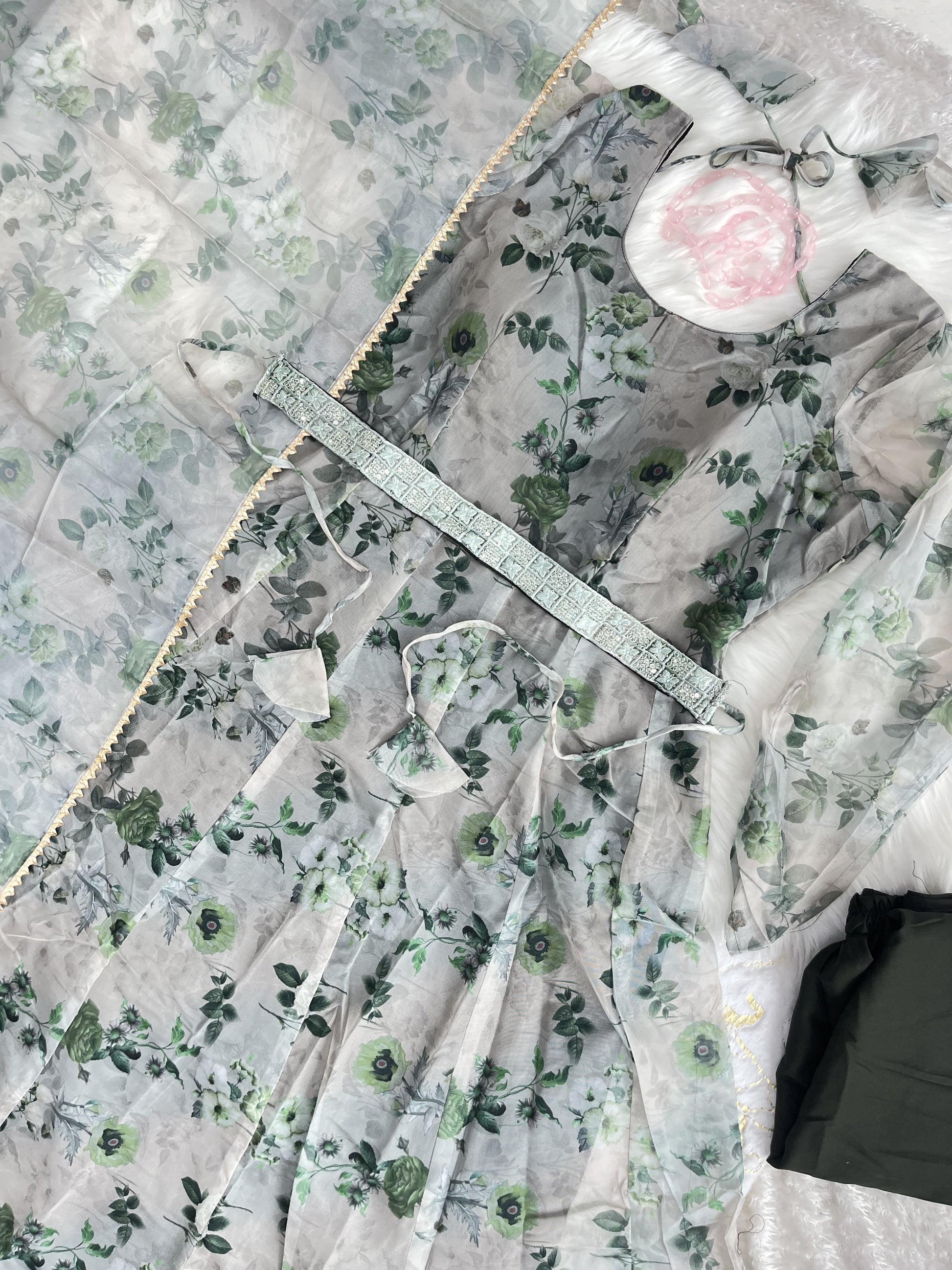 Fabric: Heavy pure soft Organza silk gown with micro cotton inner, cotton silk pants, Organza silk dupatta