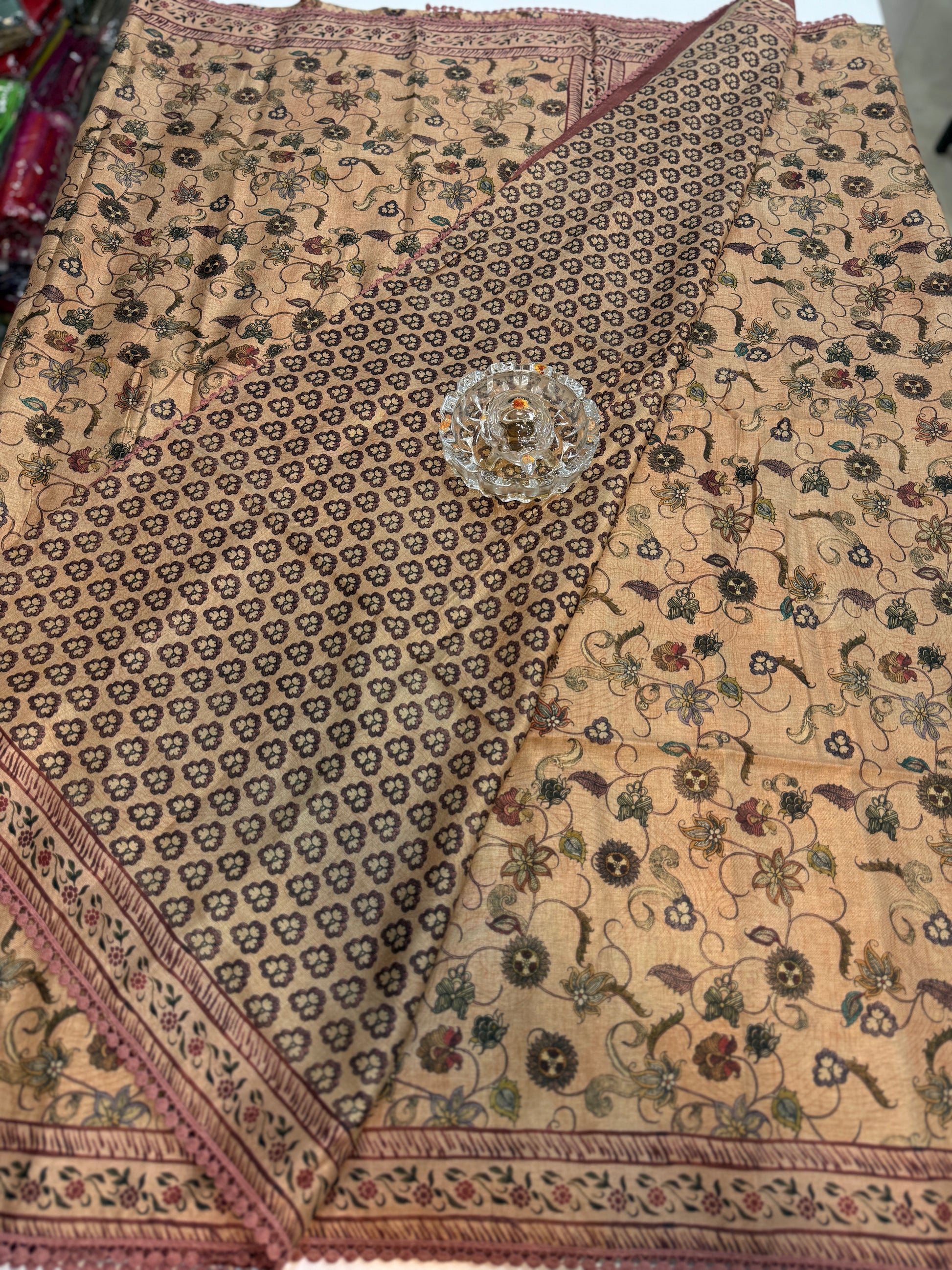 The versatile design transitions seamlessly between casual and formal events, making it a valuable addition to your collection. Each purchase includes a coordinating printed blouse piece, allowing you to create a complete, polished ensemble without additional styling concerns. The combination of traditional craftsmanship and contemporary floral aesthetics makes this saree a timeless investment for those who appreciate quality ethnic fashion.