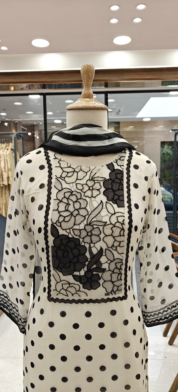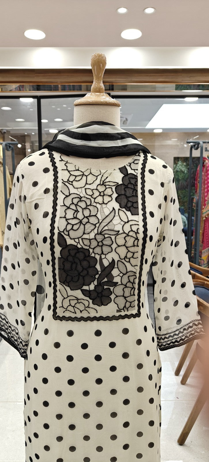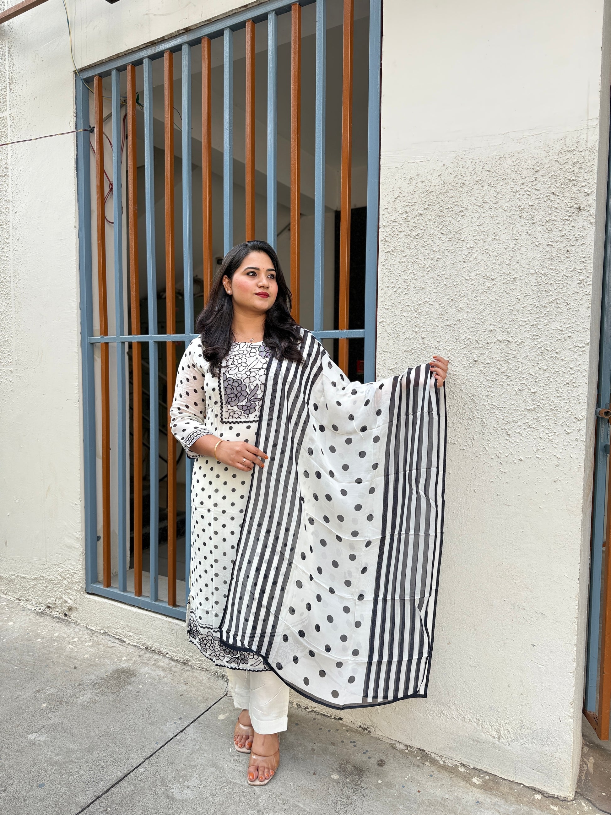 Dupatta: Coordinated organza-style dupatta with monochrome stripes