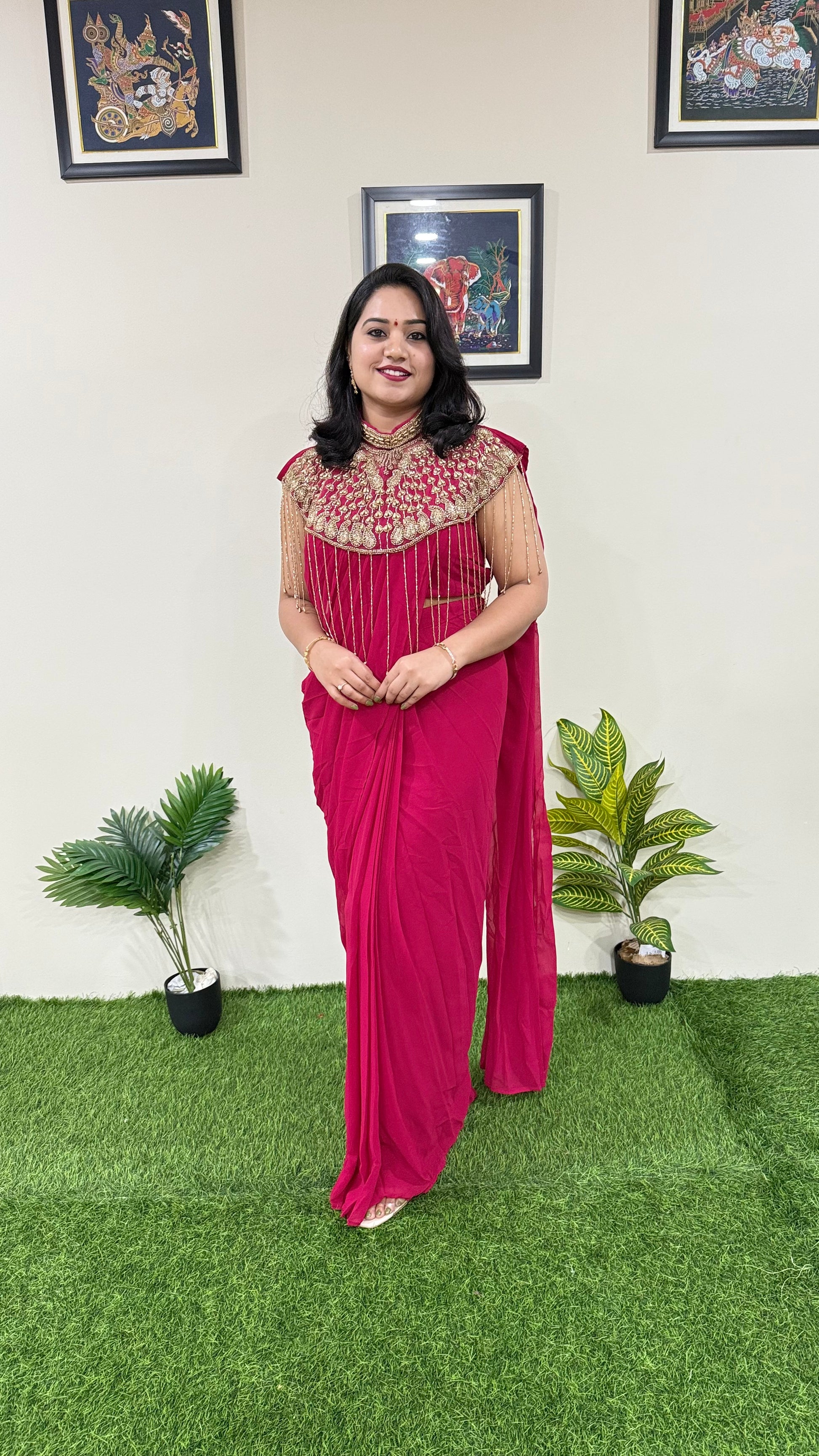Style: Indo-western saree with cape for women