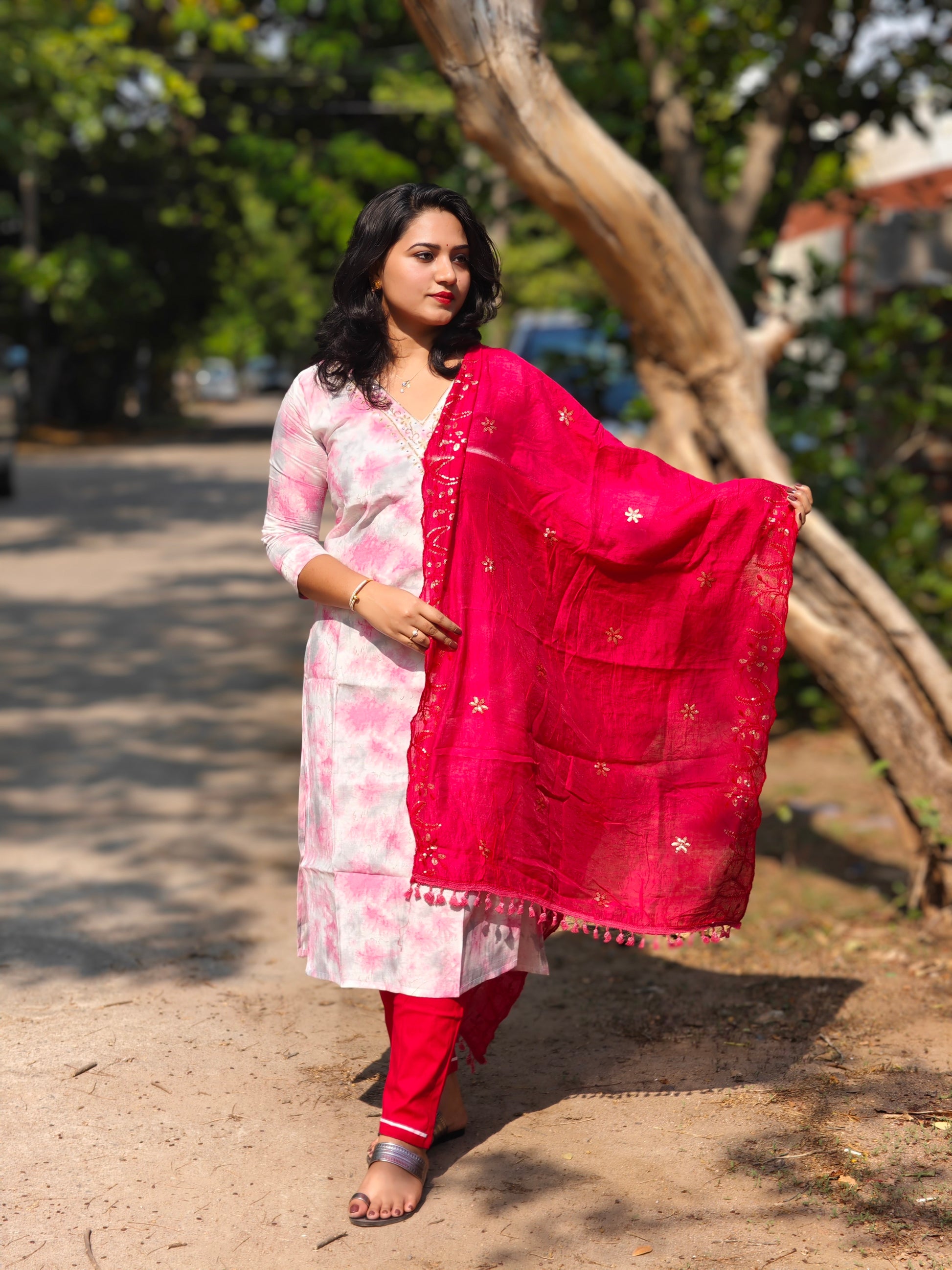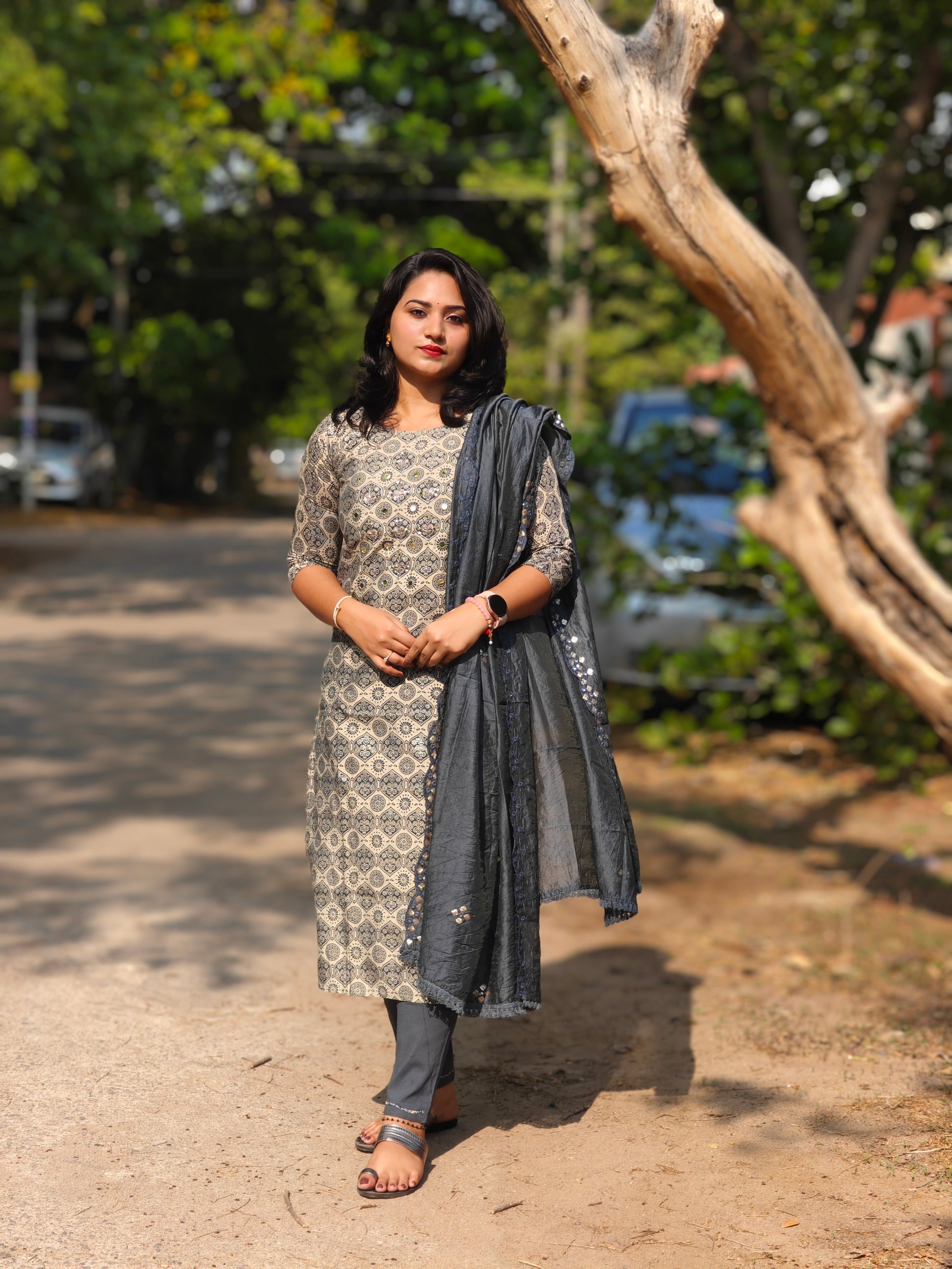 • Modal silk kurti set with heavy dupatta, handcrafted ethnic set, festive kurti pant dupatta set