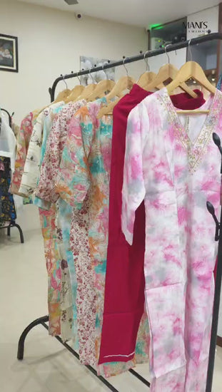 This handcrafted kurti set combines luxurious fabric with intricate detailing for an elegant, festive look. The top is made from premium modal silk with a soft cotton lining for comfort, paired with matching pants for a cohesive style. The highlight of this ensemble is the heavy work dupatta, featuring meticulous craftsmanship that adds richness and sophistication. Each piece is carefully color interlocked to ensure durability and long-lasting vibrancy. Available in sizes M to 3XL, this set is perfect for weddings, festive events, and special celebrations.