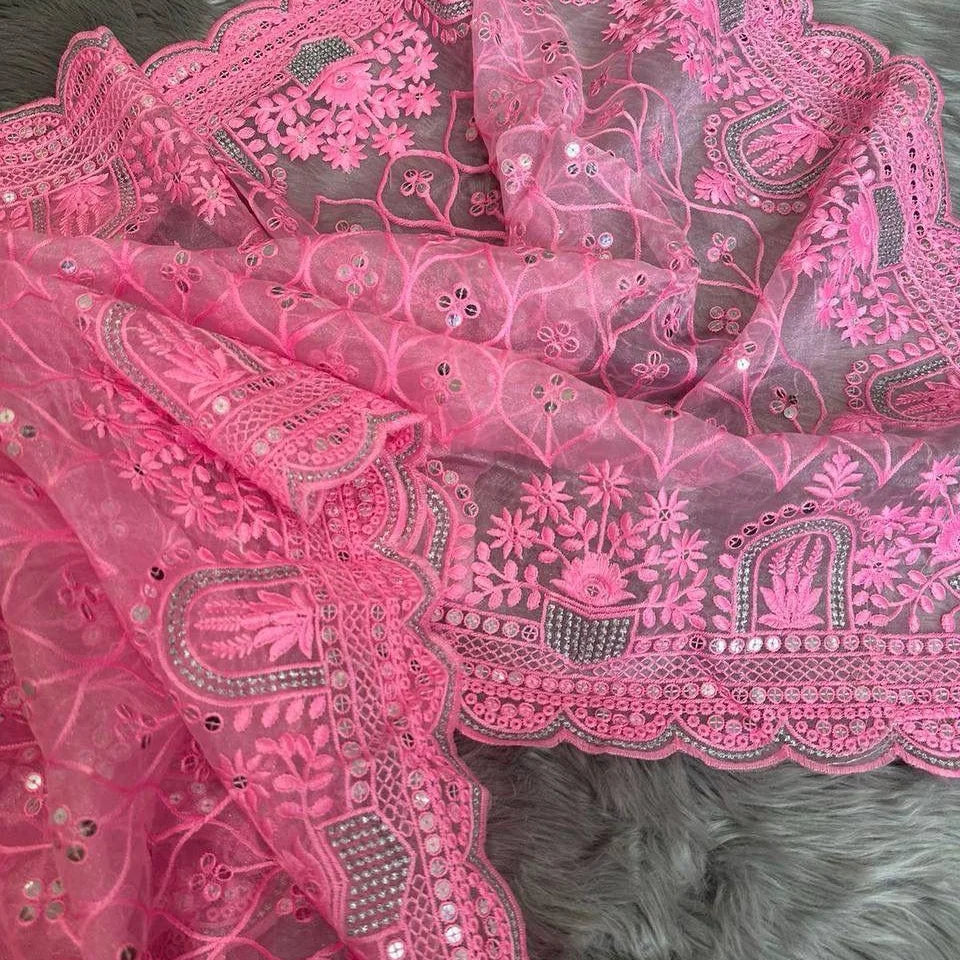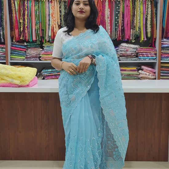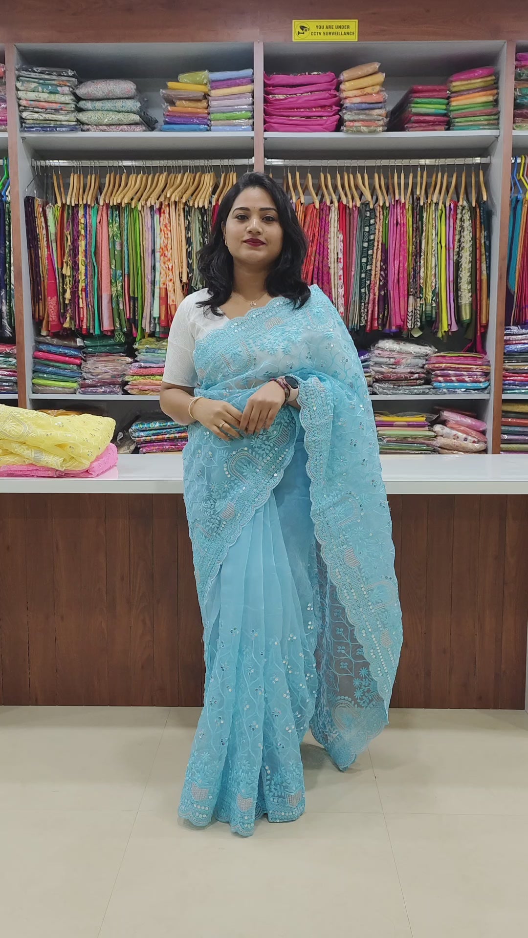 Premium Organza Saree with Multi-Thread Sequin Work and Mono Silk Blouse Piece