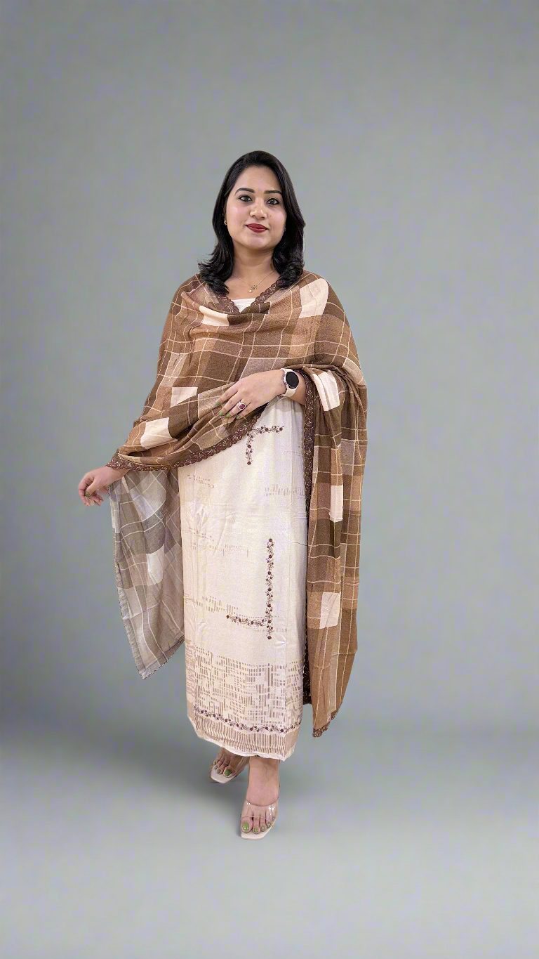 Fit & Style: Regular fit, comfortable pashmina suit with embroidered dupatta