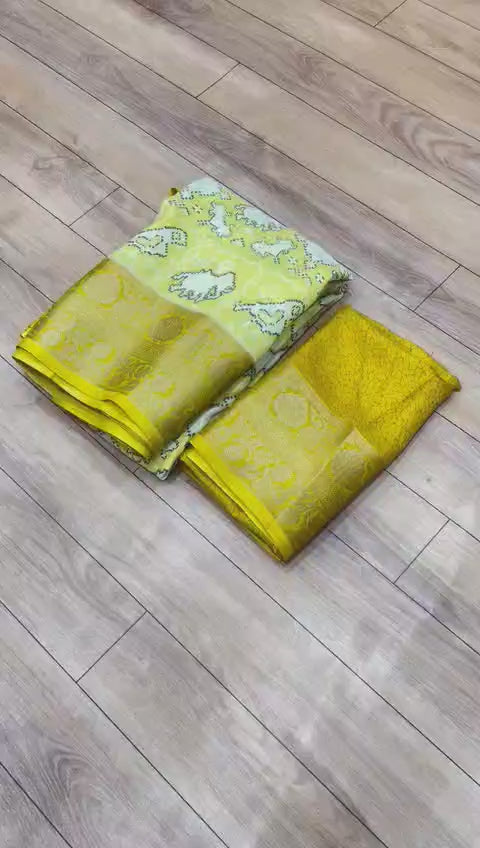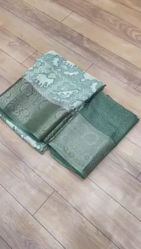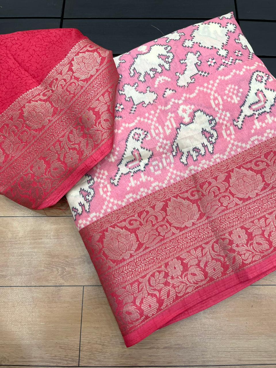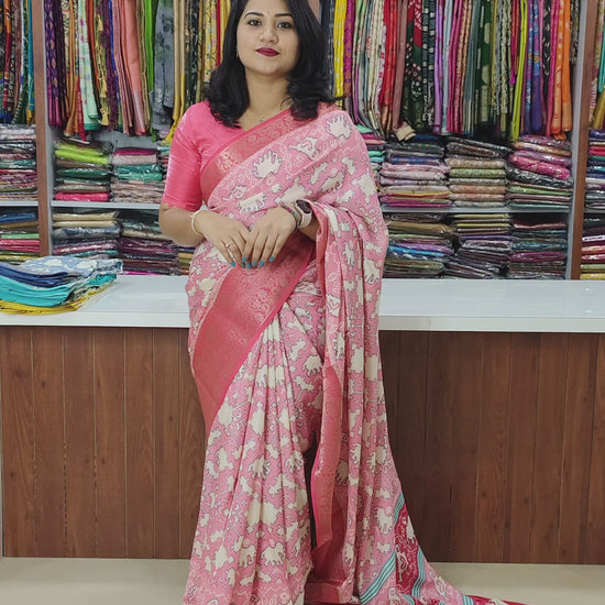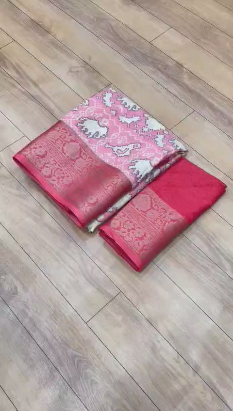 Premium Crepe Silk Printed Saree with Weaving Viscose Border and Running Blouse