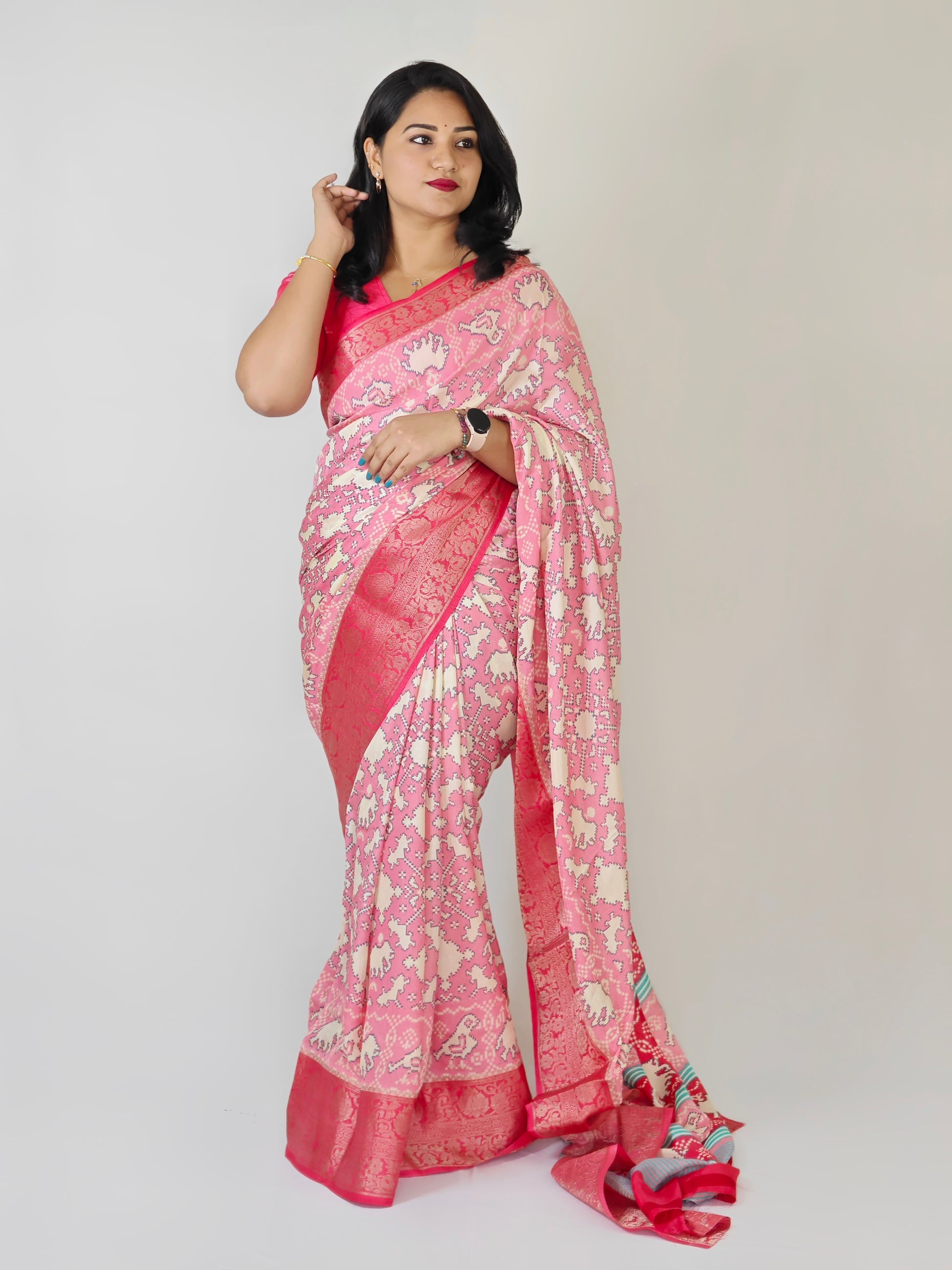 Components: Saree (5.50 m) with matching running blouse (0.80 m).