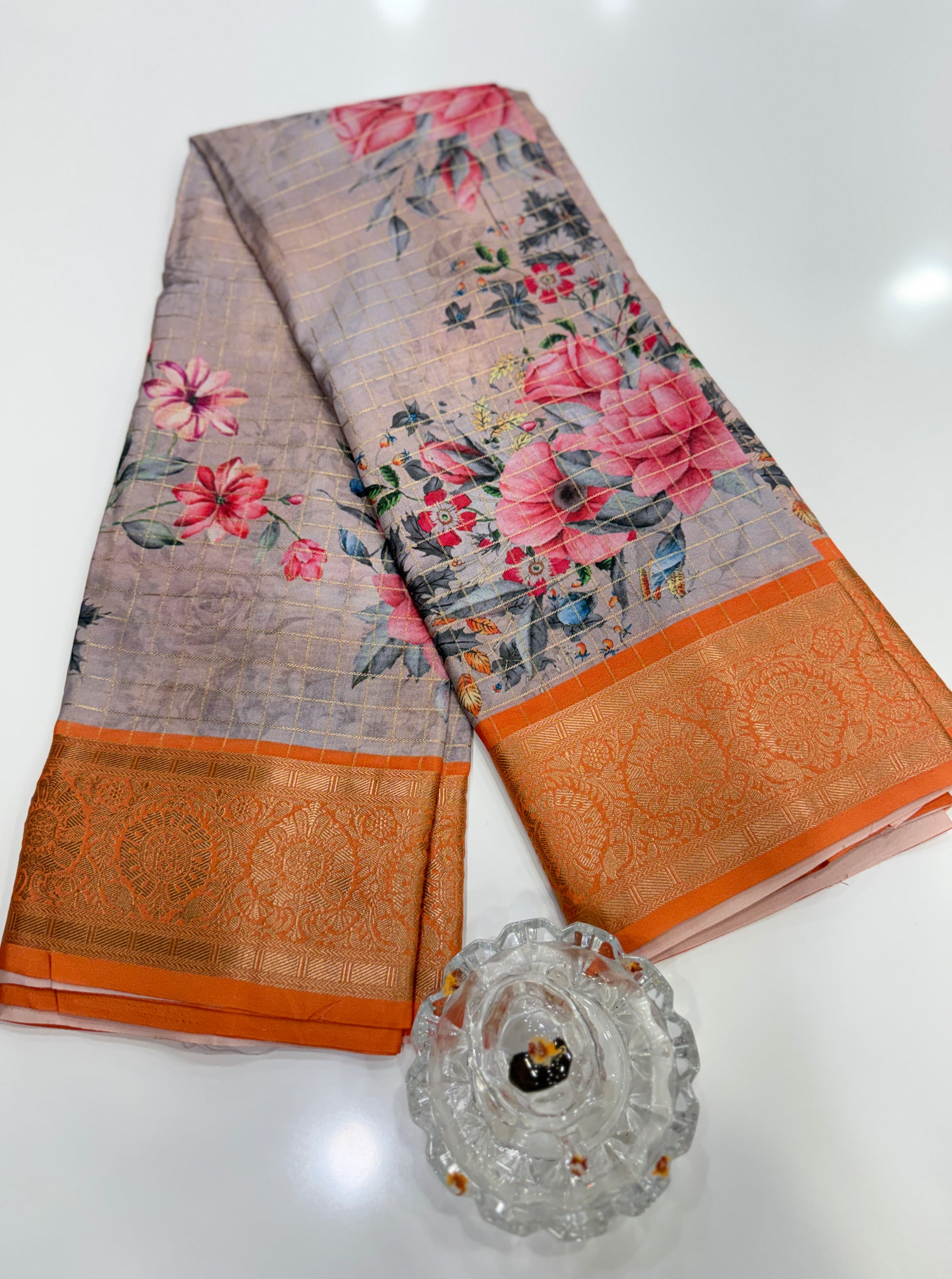 This style is ideal for customers looking for soft-feel drapes, lightweight party wear sarees, printed festive sarees, or elegant handloom-inspired pieces. The saree blends smooth texture, breathable fabric, and vibrant print clarity, making it an excellent option for gifting or wardrobe staples.