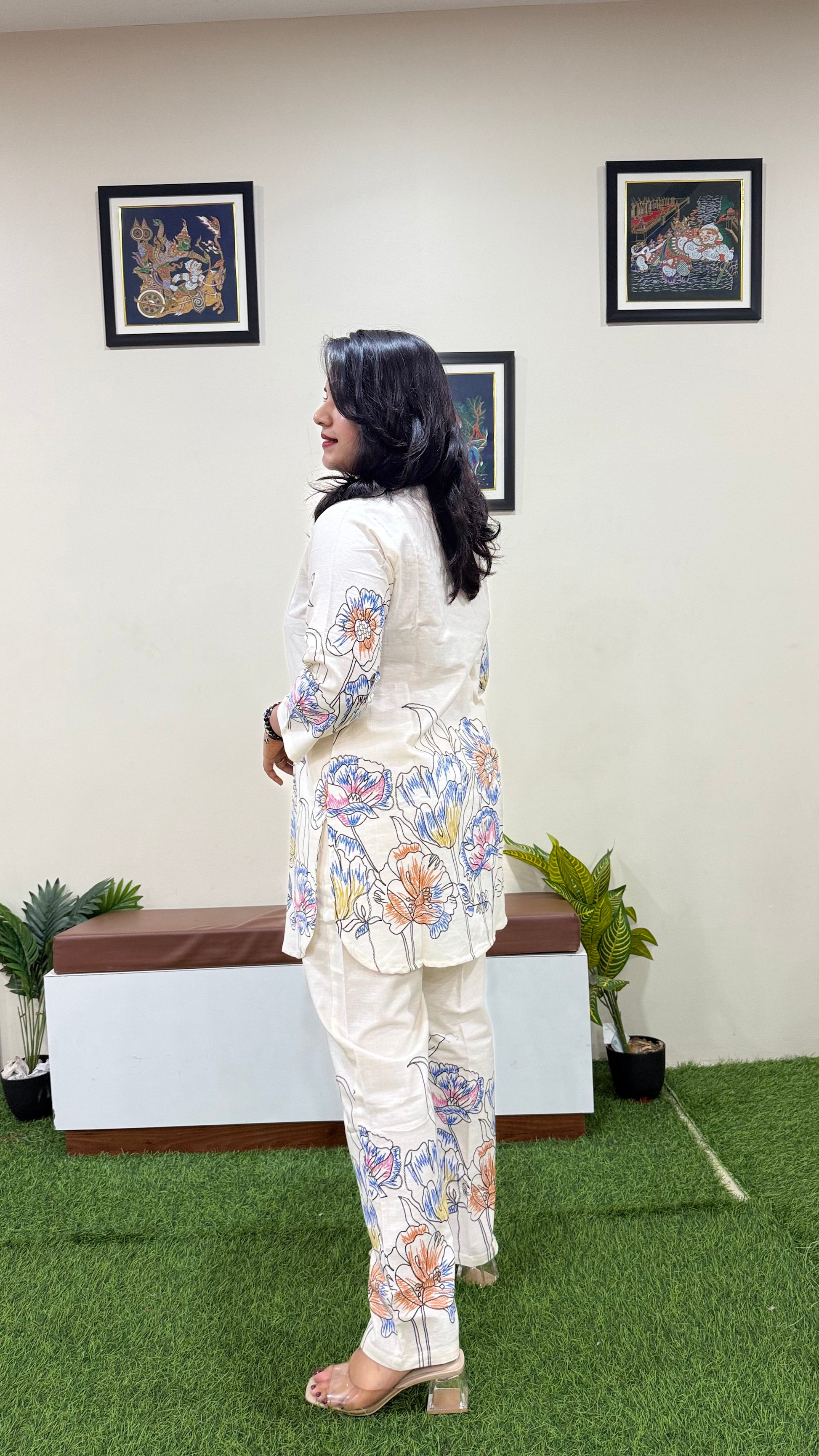 This women's cotton flex co-ord set is thoughtfully designed for effortless summer style, combining breathable comfort with a modern silhouette. Crafted from lightweight pure cotton flex, the set offers a soft, airy texture ideal for warm weather, making it a go-to choice for casual outings, travel, or laid-back gatherings.