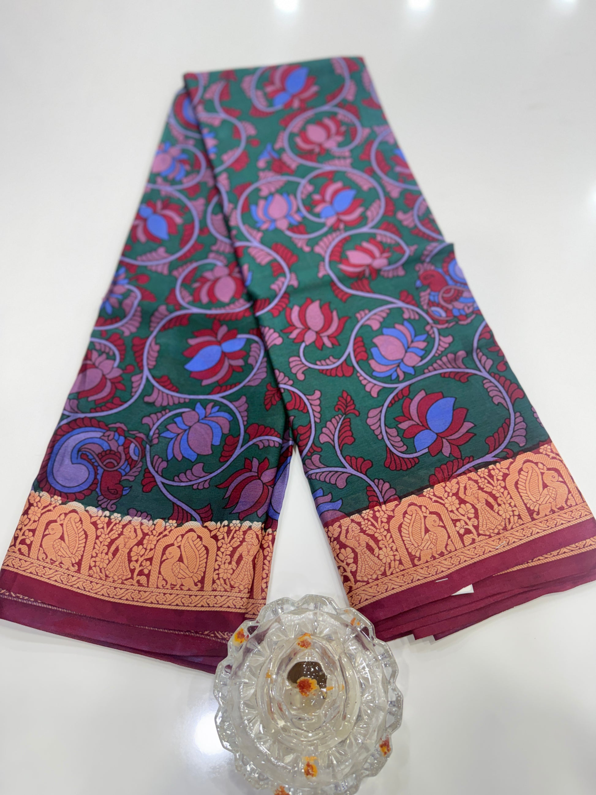 Pure Crepe Mysore Silk Saree for Women – Kalamkari Print with Kathan Border, 75 Gram, Silk Mark Certified