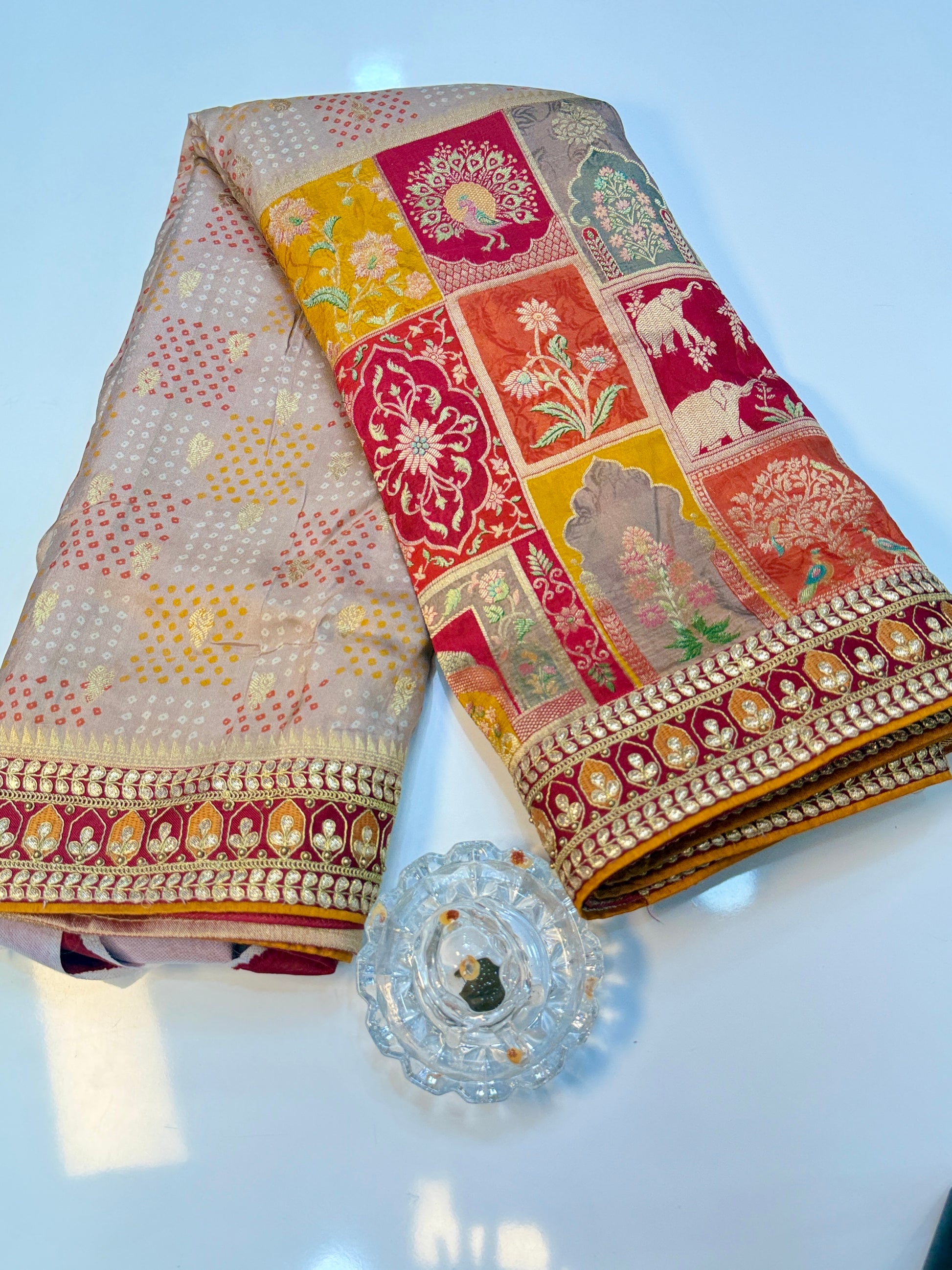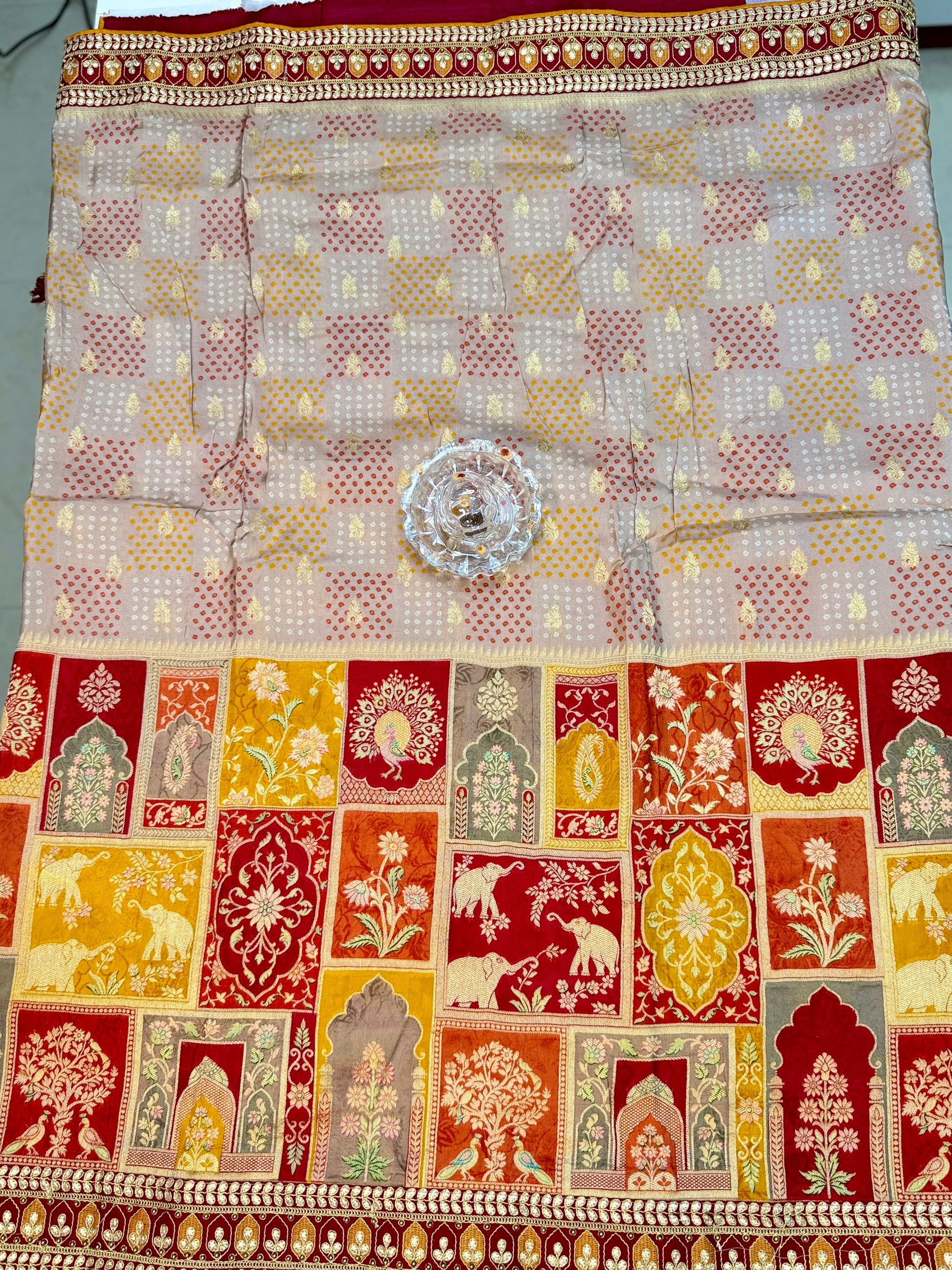 Saree Fabric: Premium Dola Silk with position weaving and intricate border