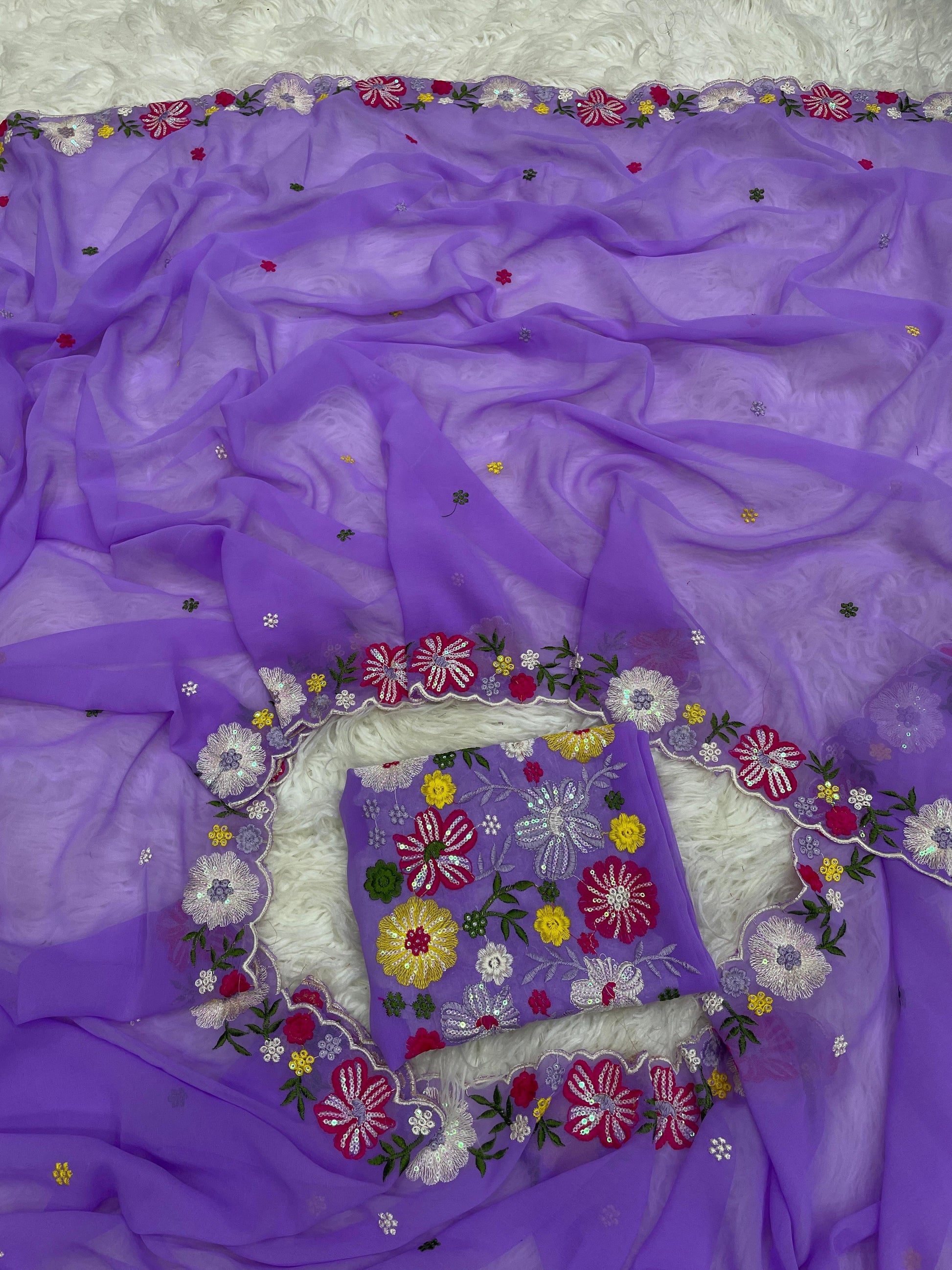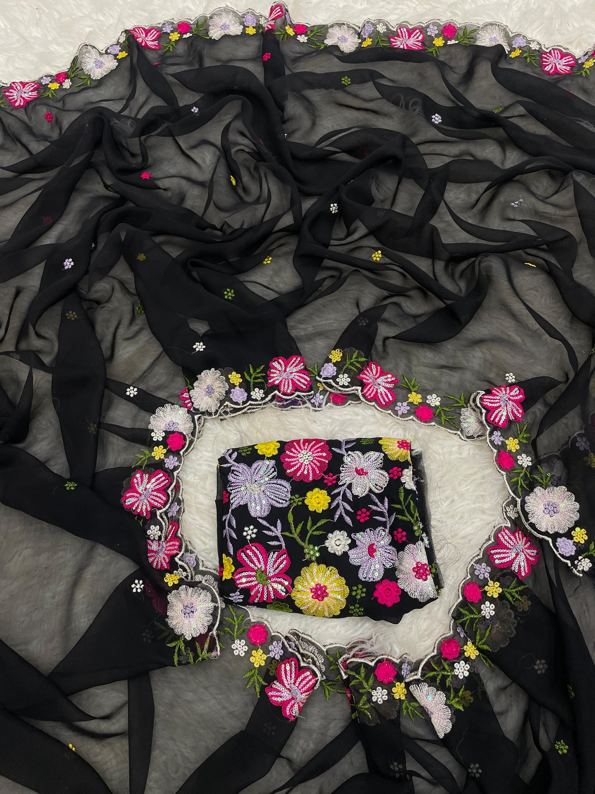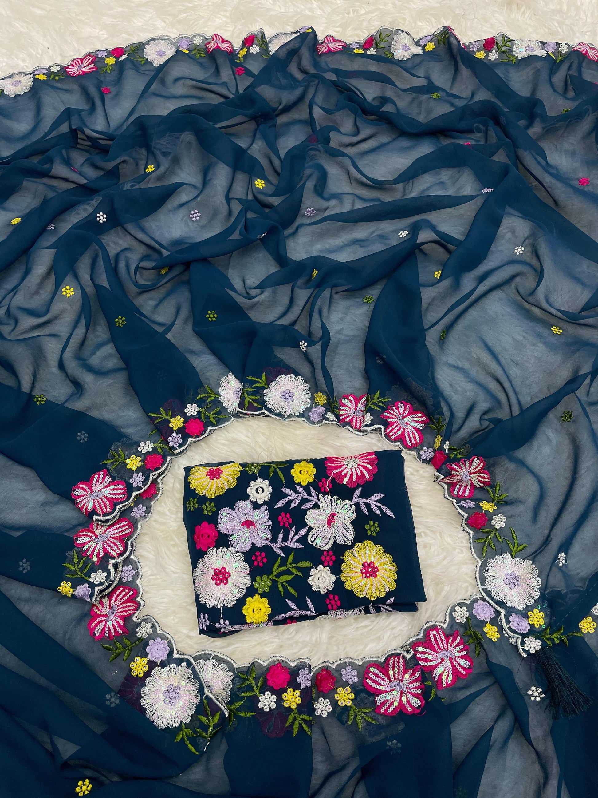 Fabric: Pure georgette saree with heavy embroidered blouse