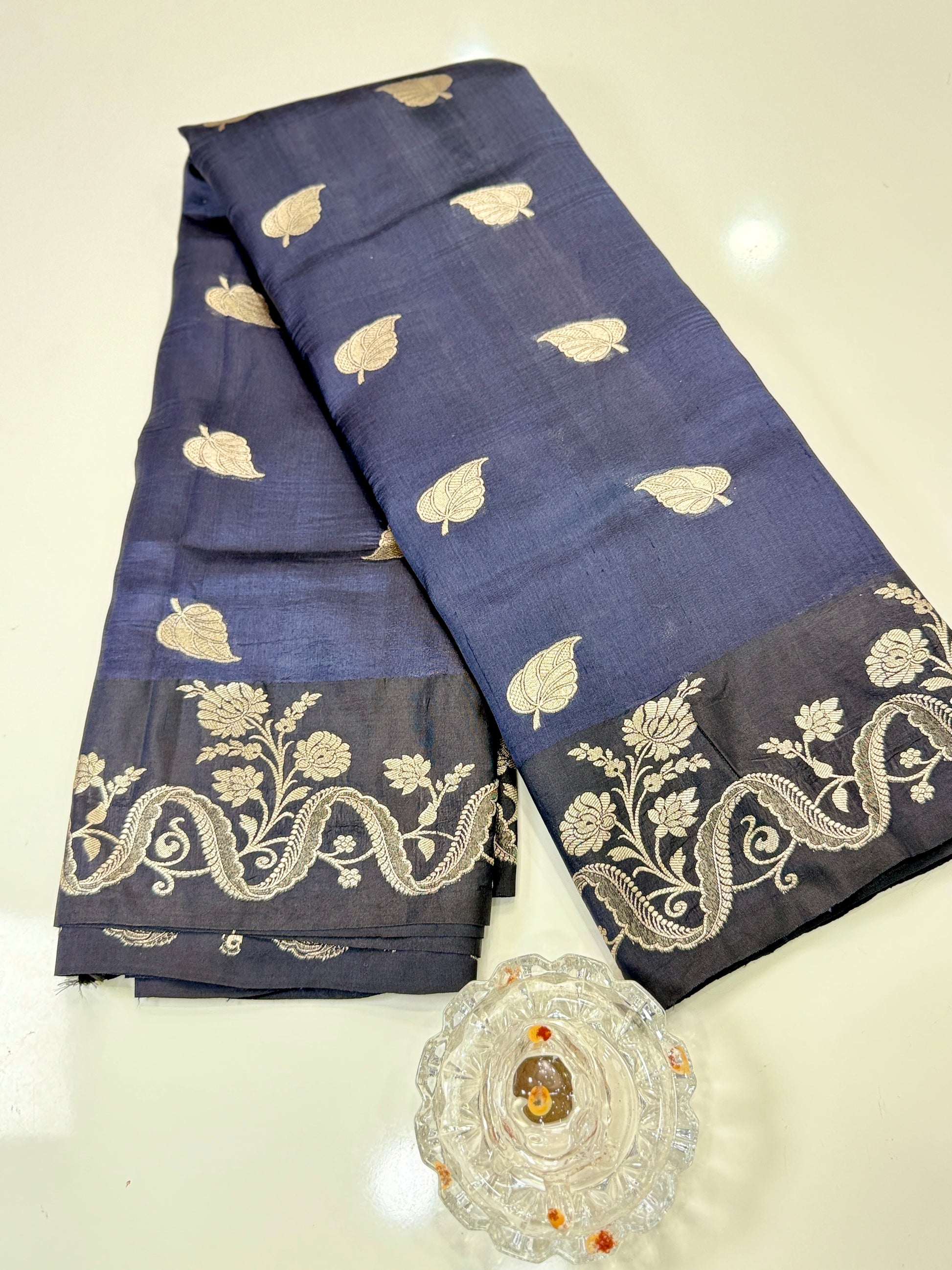 Weaving/Work: Handloom Banarasi kaduwa resham zari motifs with ornate borders