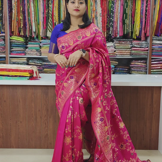 Work/Design: Intricate zari work with vibrant Minakari weaving.