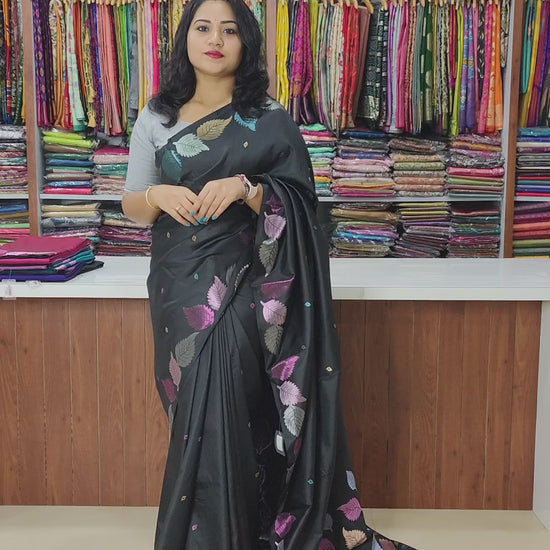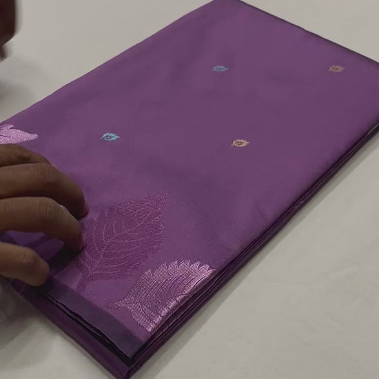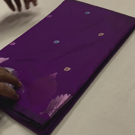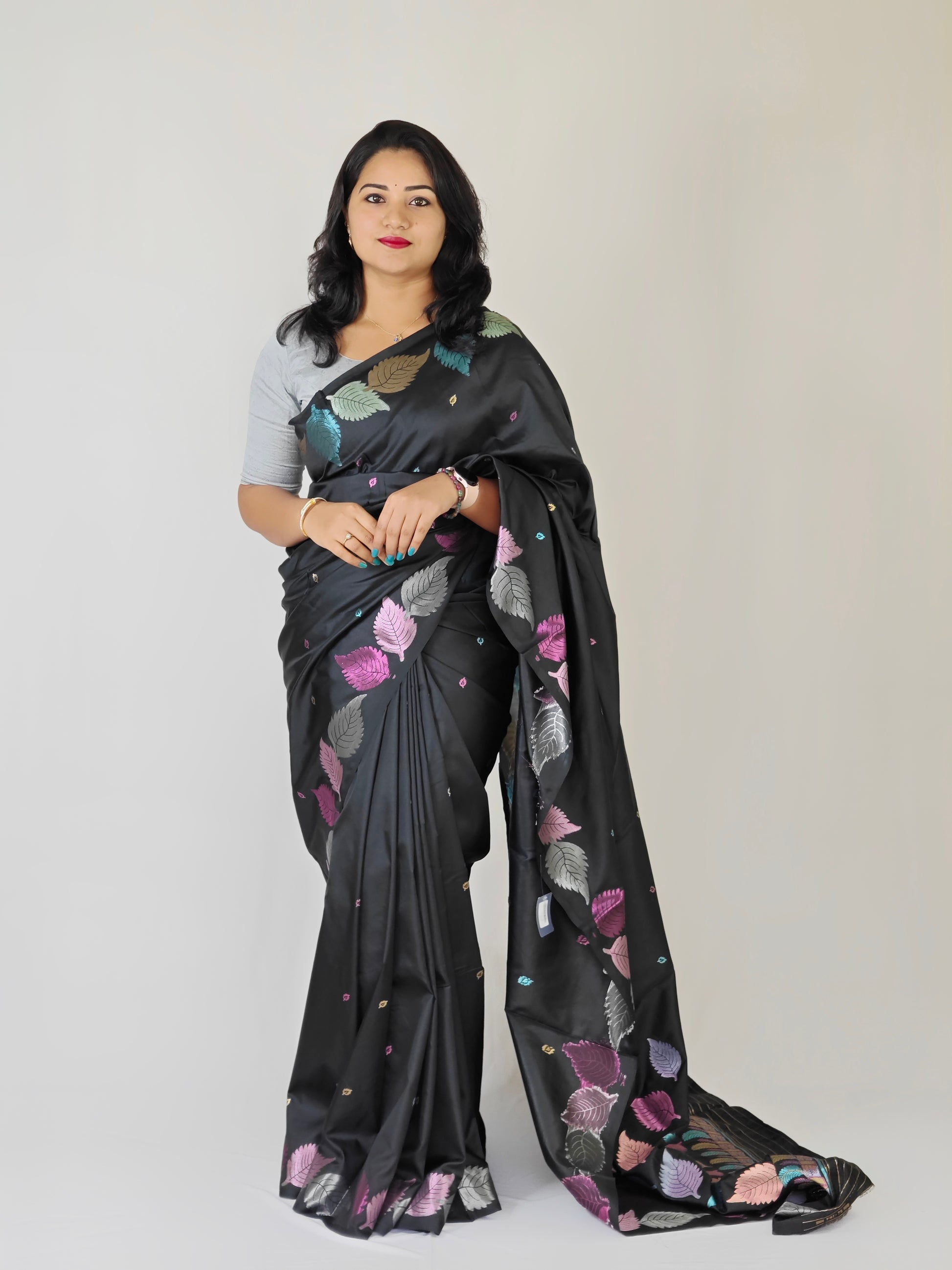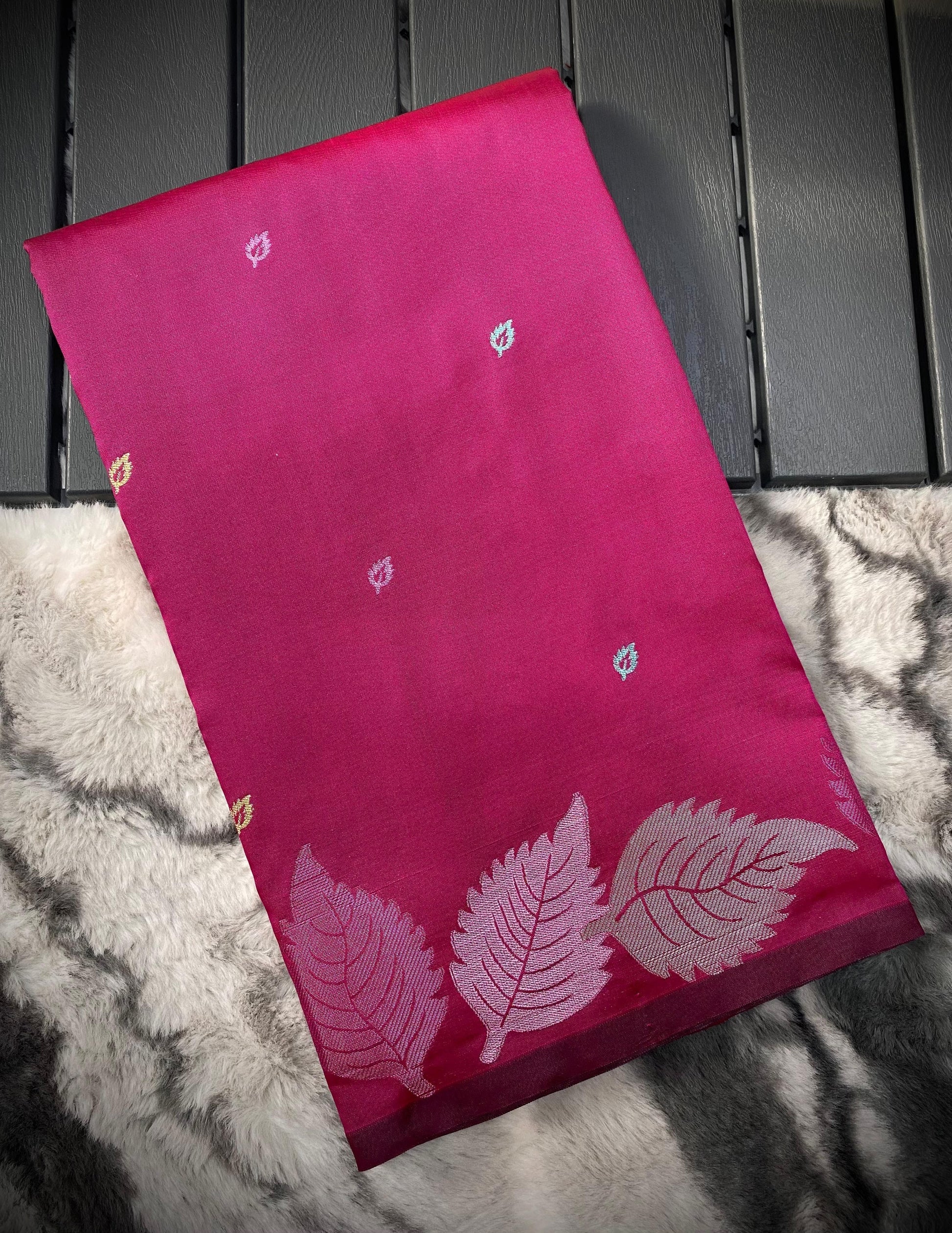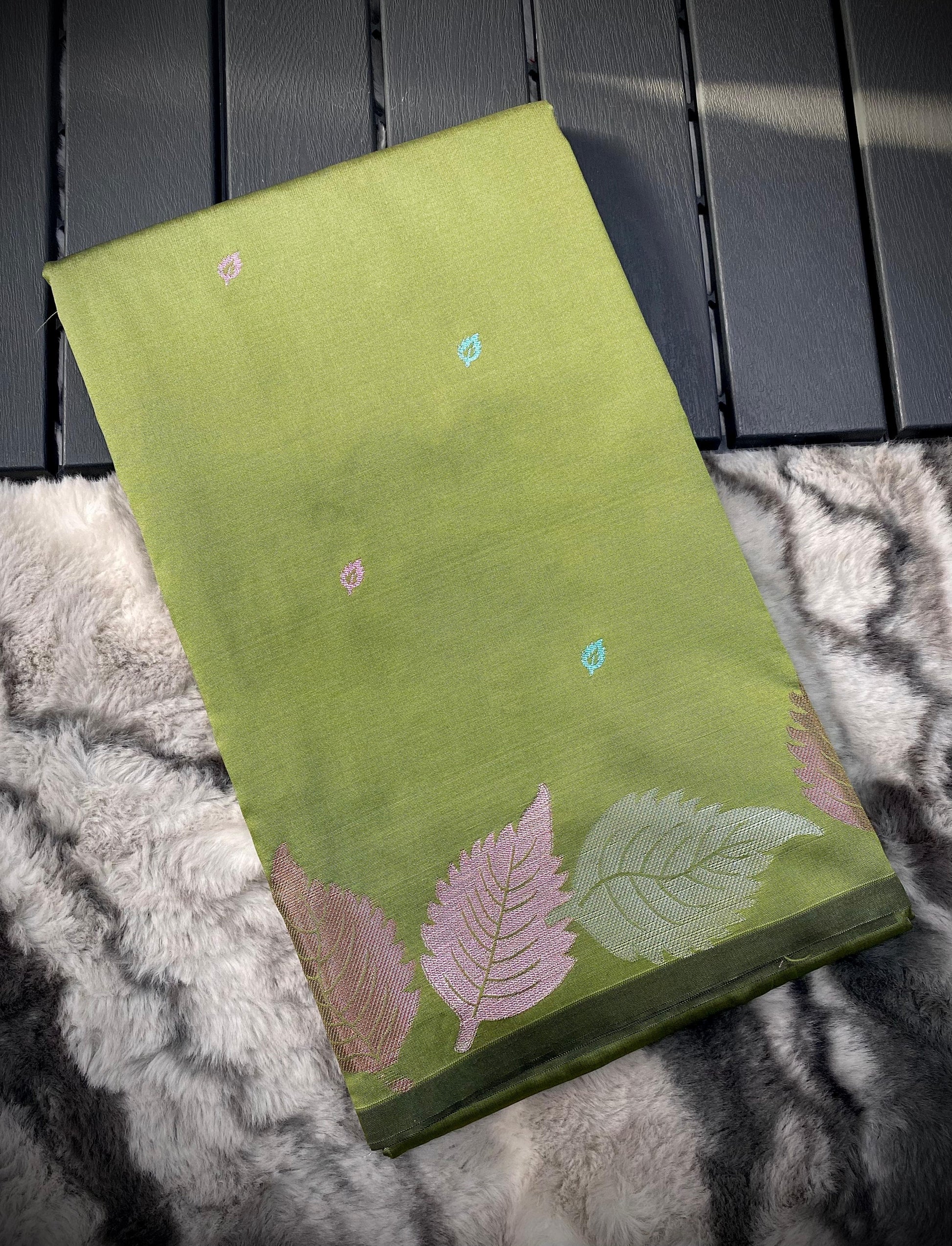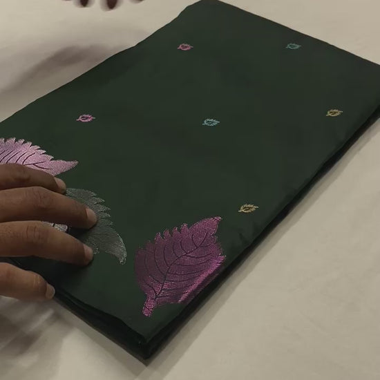 Pure Soft Silk Saree with Colorful Weaving and Leaf Panel Design