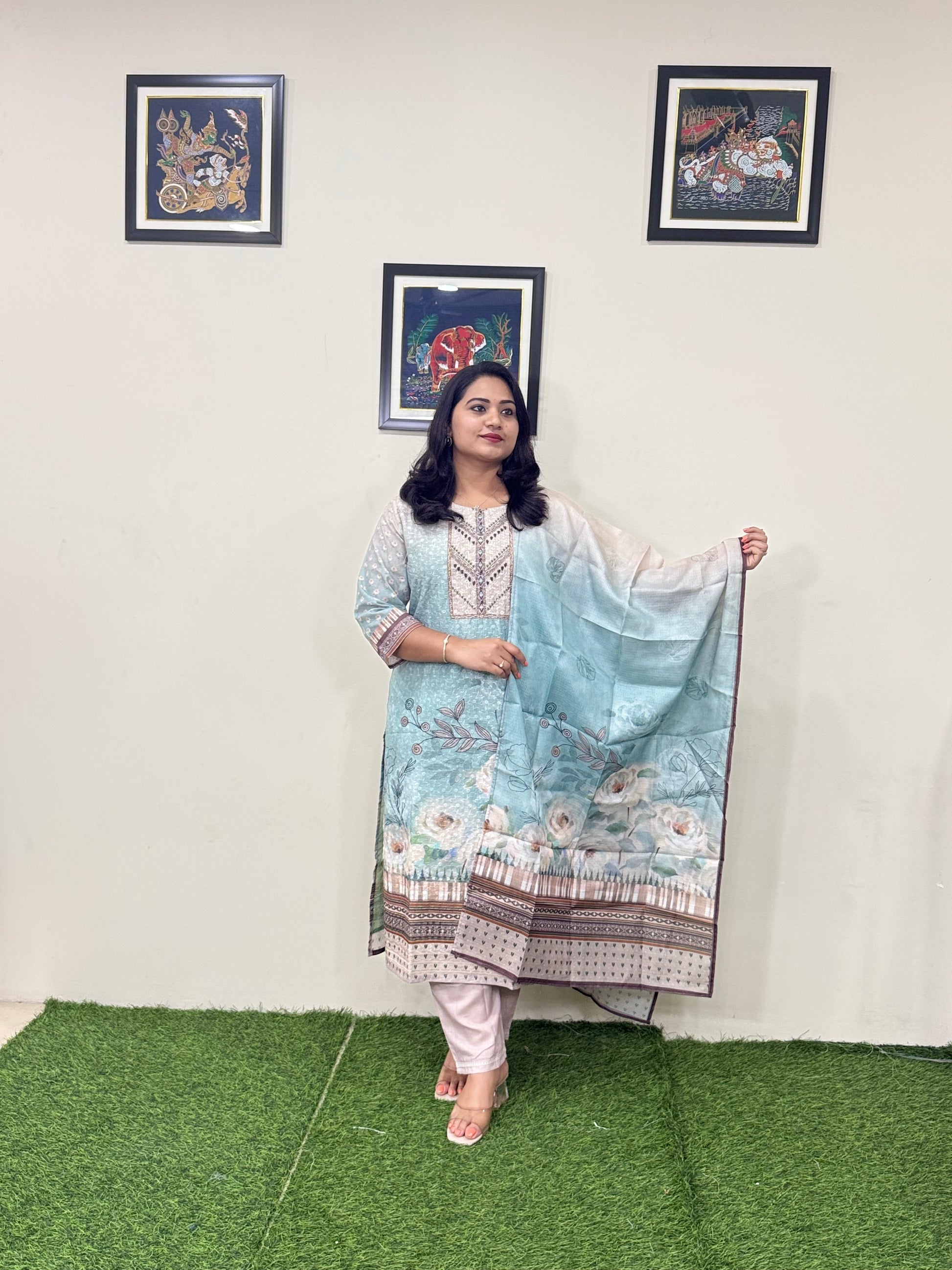 Fabric: Pure cotton Schiffli for top with cotton mal inner, pure cotton bottom, pure cotton muslin dupatta
