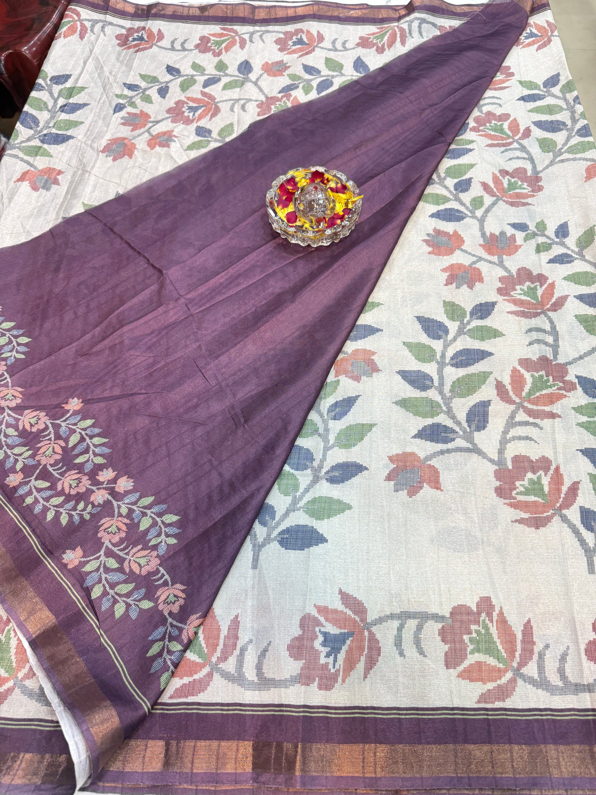 This saree works well for office ethnic days, casual outings, family gatherings, and daytime festive events. Pair it with a plain or contrast blouse to highlight the floral layout and border framing. Since blouse details and exact saree length are not provided in the catalogue note, they are not claimed in this listing.