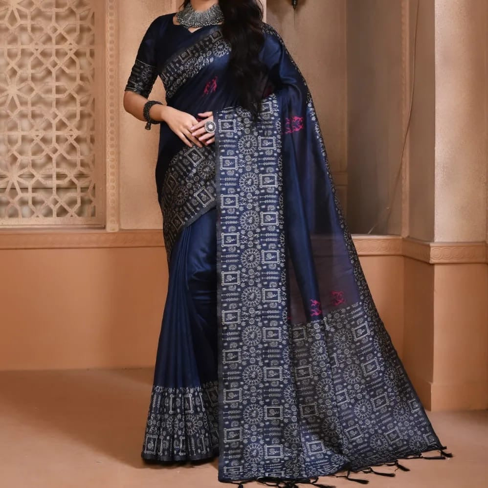 The saree features a beautifully woven rich pallu, designed to highlight traditional craftsmanship with intricate detailing. Its elegant finish adds depth and character, making it perfect for festive occasions, weddings, or cultural gatherings. A matching running blouse piece is included, unstitched for custom tailoring, ensuring a cohesive and personalized ensemble.