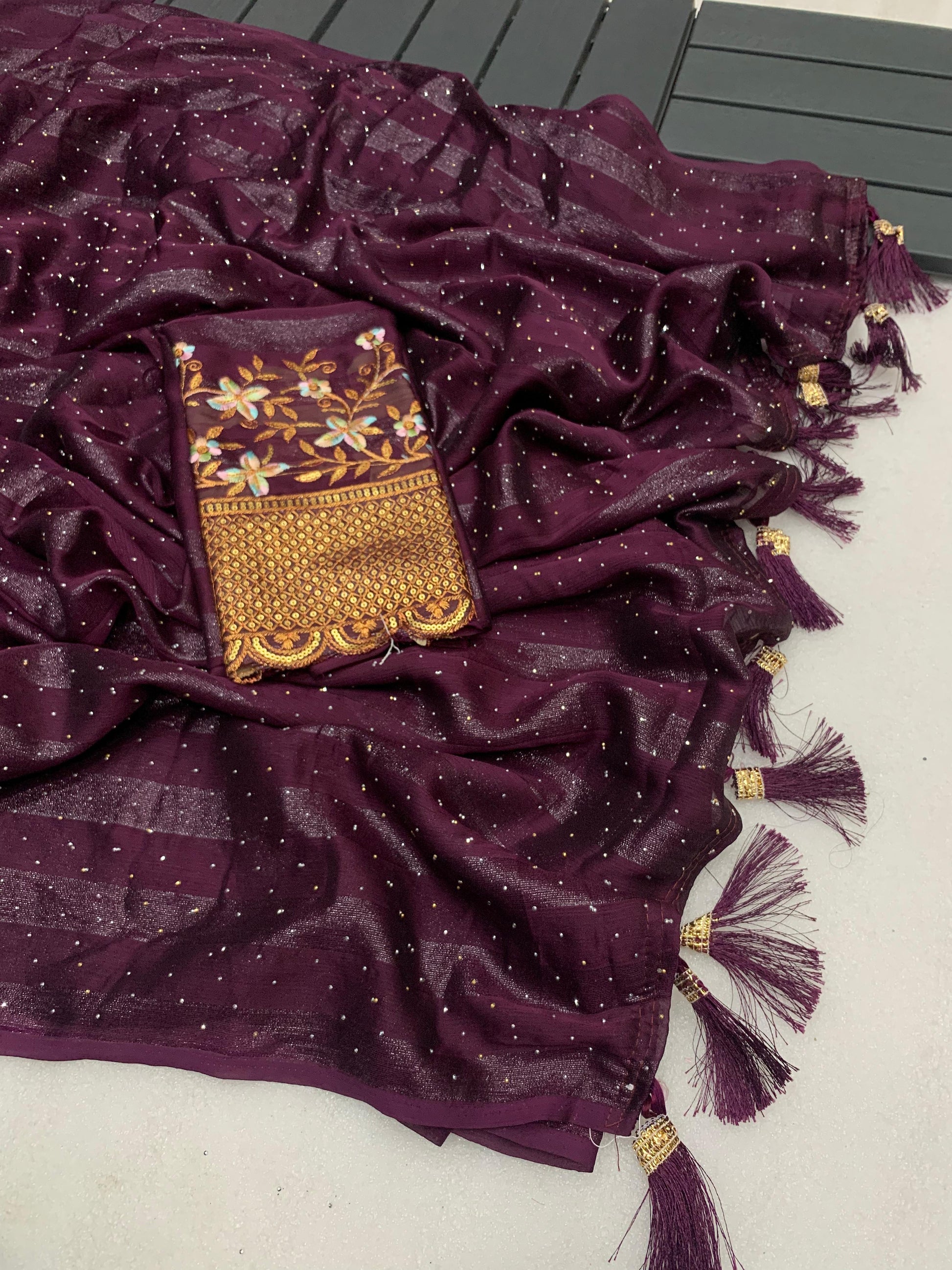 Riya: Soft Georgette Saree with Swarovski and Embroidery Work Blouse