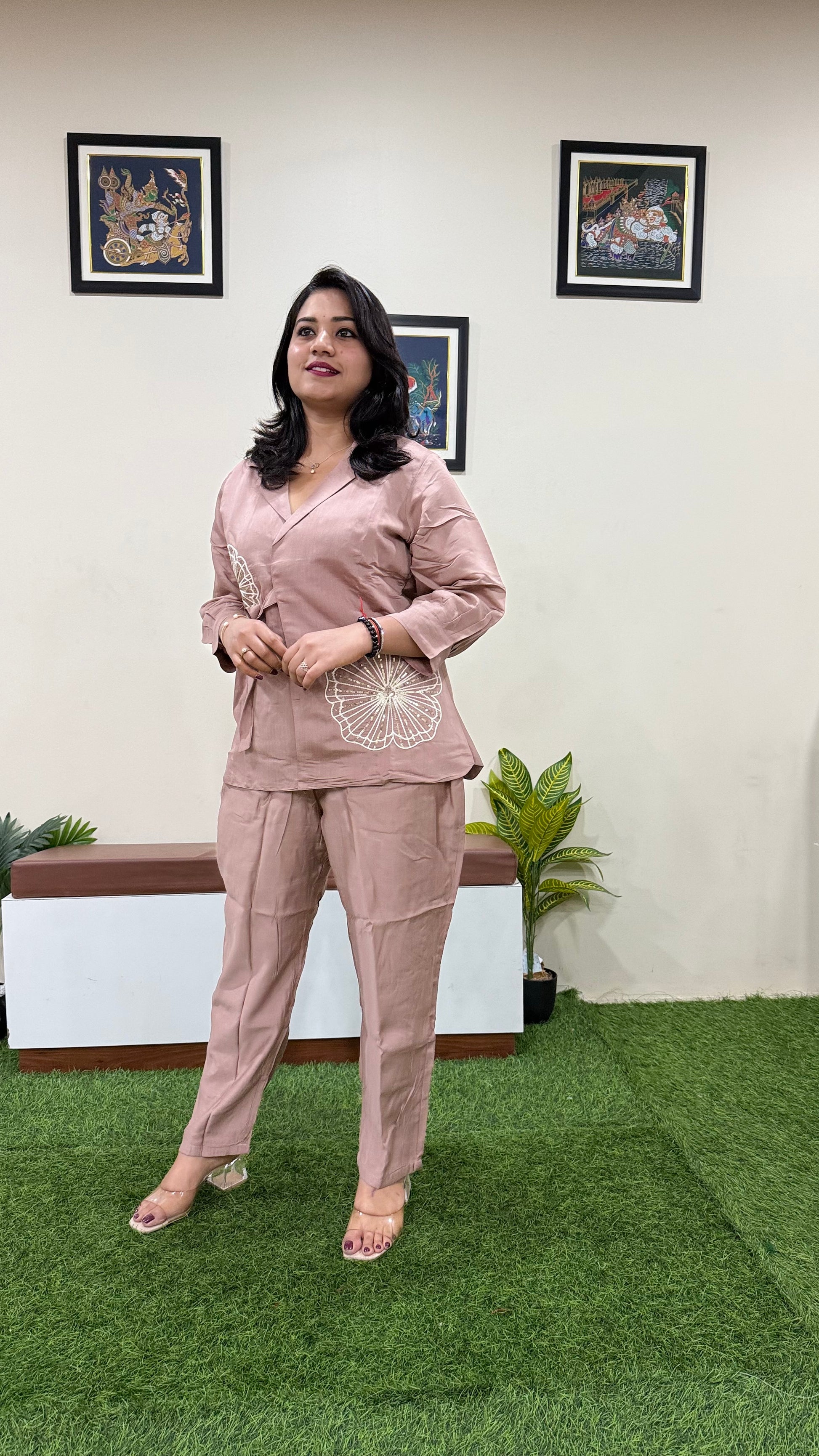Perfect for festive brunches, cultural events, semi-formal evenings, or even upscale office wear, this co-ord set delivers a polished look that blends ethnic roots with a modern approach. Its understated sophistication allows for easy pairing with metallic heels, statement jewelry, or a sleek clutch to complete the outfit.