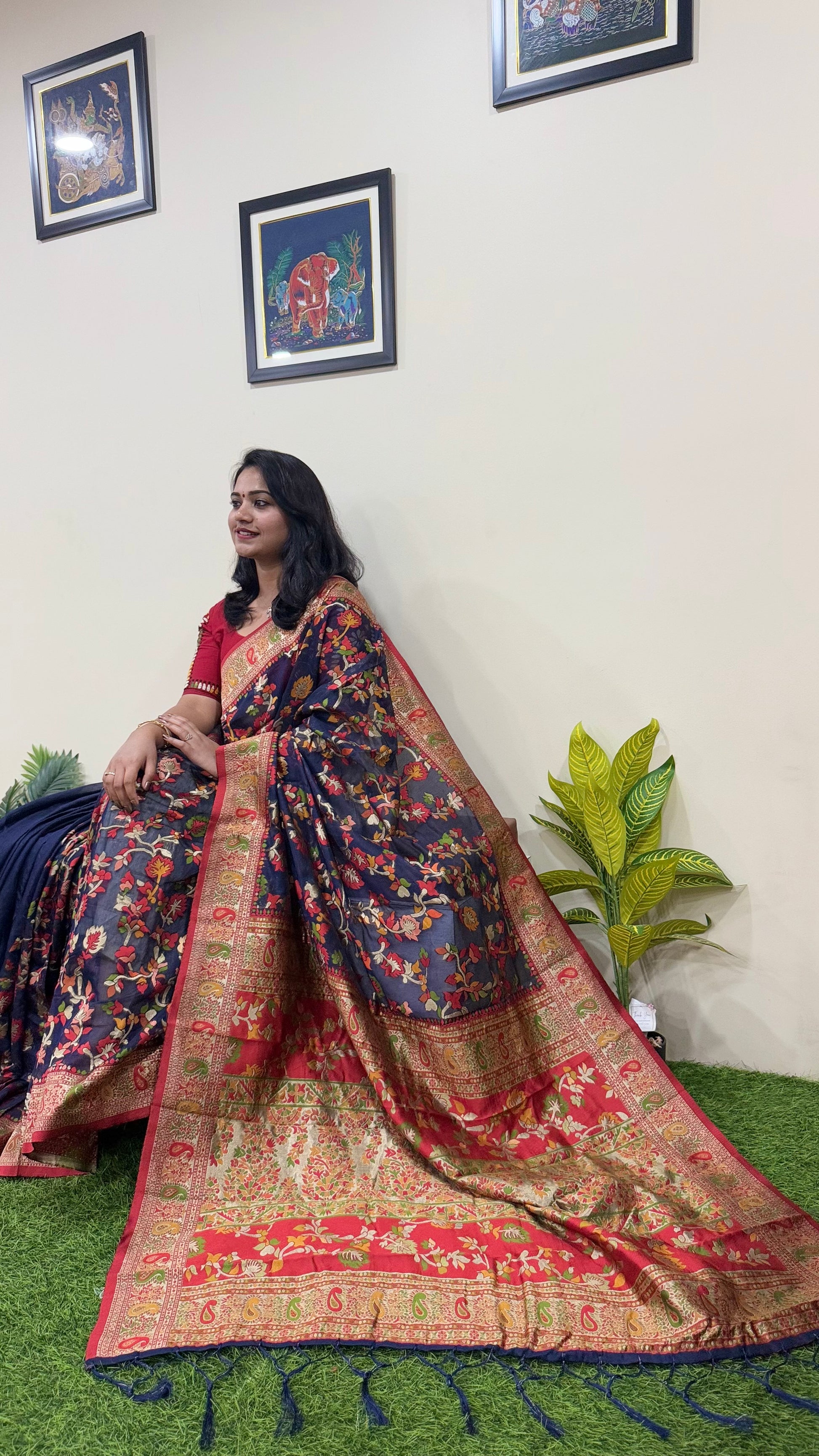 This semi-Chanderi silk pashmina saree offers a graceful blend of softness and warmth, ideal for the winter festive season. Crafted with a rich woven pattern, the saree drapes beautifully while maintaining a lightweight yet cozy feel. The combination of silk and pashmina enhances its elegance and comfort, making it a refined choice for weddings, pujas, or cultural gatherings. Suitable for women who prefer traditional attire with seasonal functionality, this saree pairs well with embroidered blouses and heritage accessories.