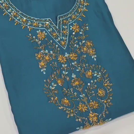 Fit & Style: Straight-fit kurta with comfortable cotton inner lining, paired with handworked pant and lightweight dupatta