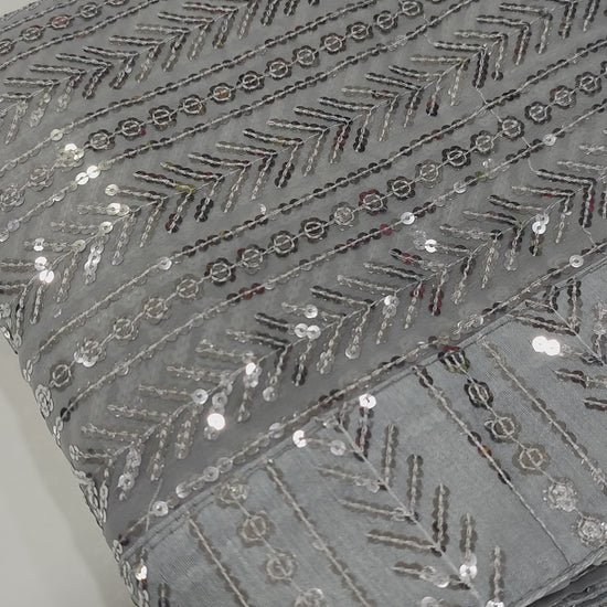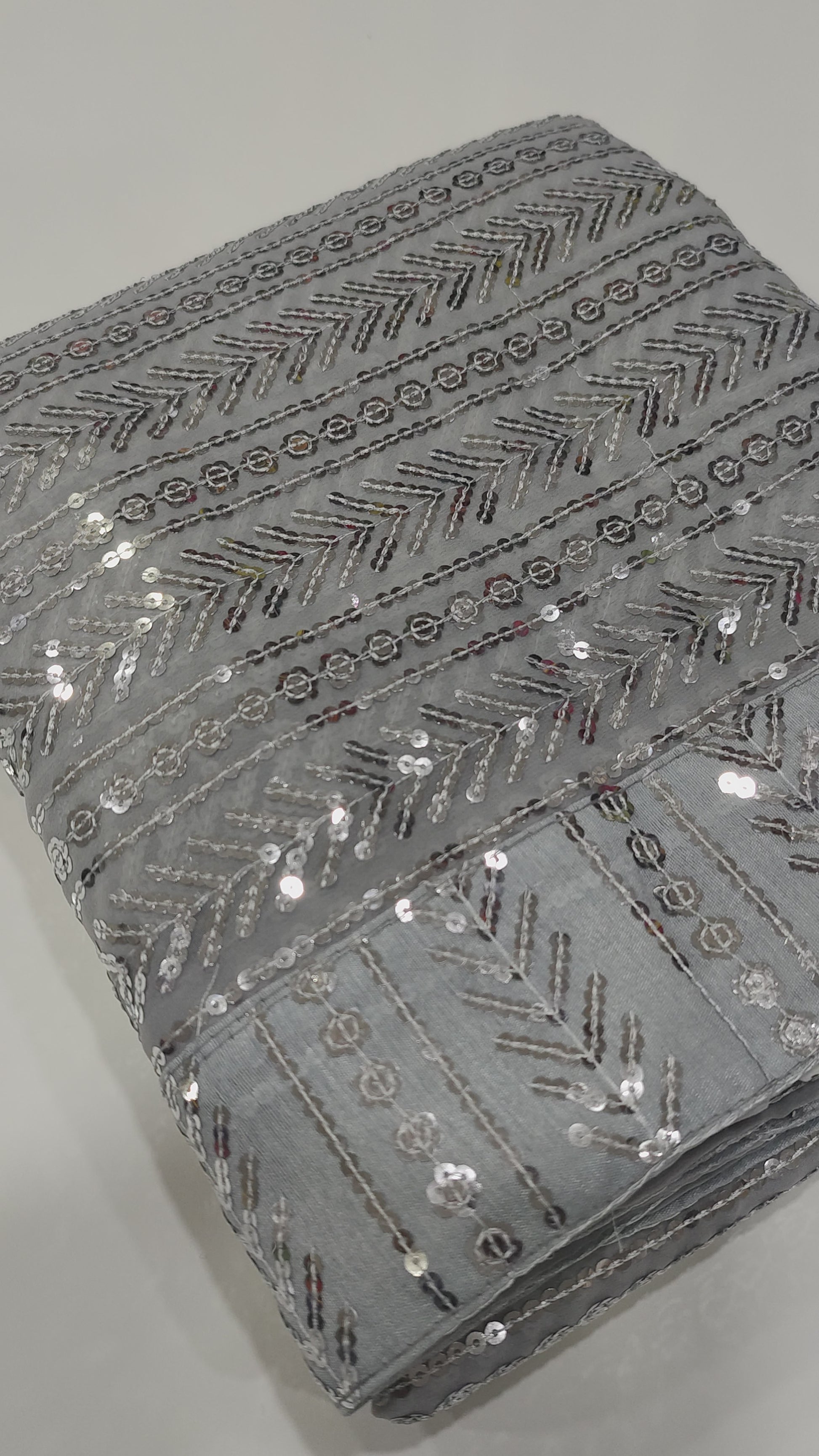SEO Keywords: Soft georgette sequins saree, double run embroidery saree, festive saree with lace border