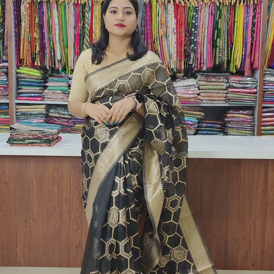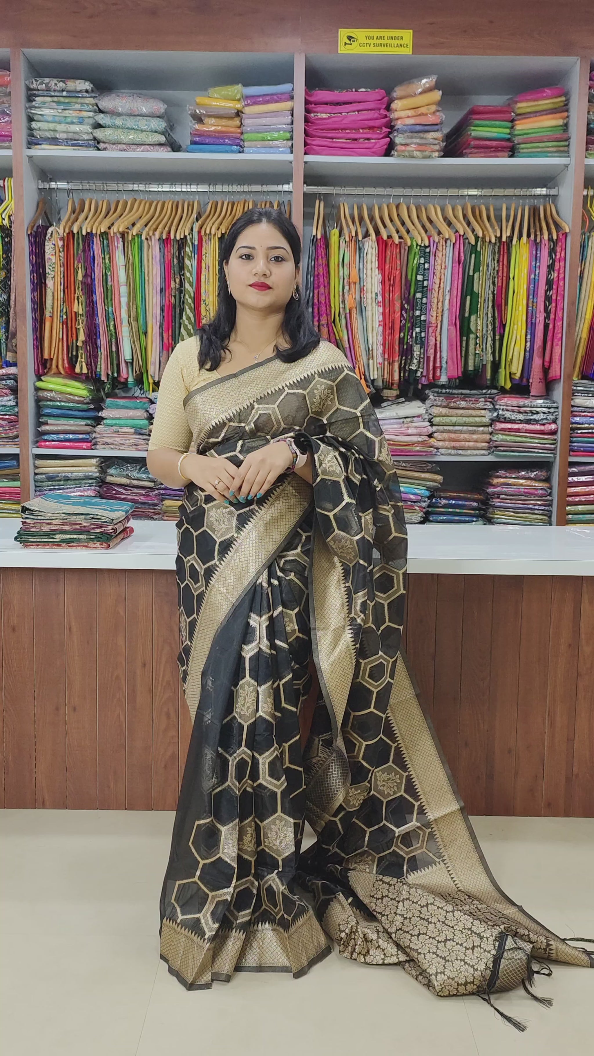 SEO Keywords: organza silk zari weaving saree, golden butti saree with silver pallu, brocade blouse festive saree.