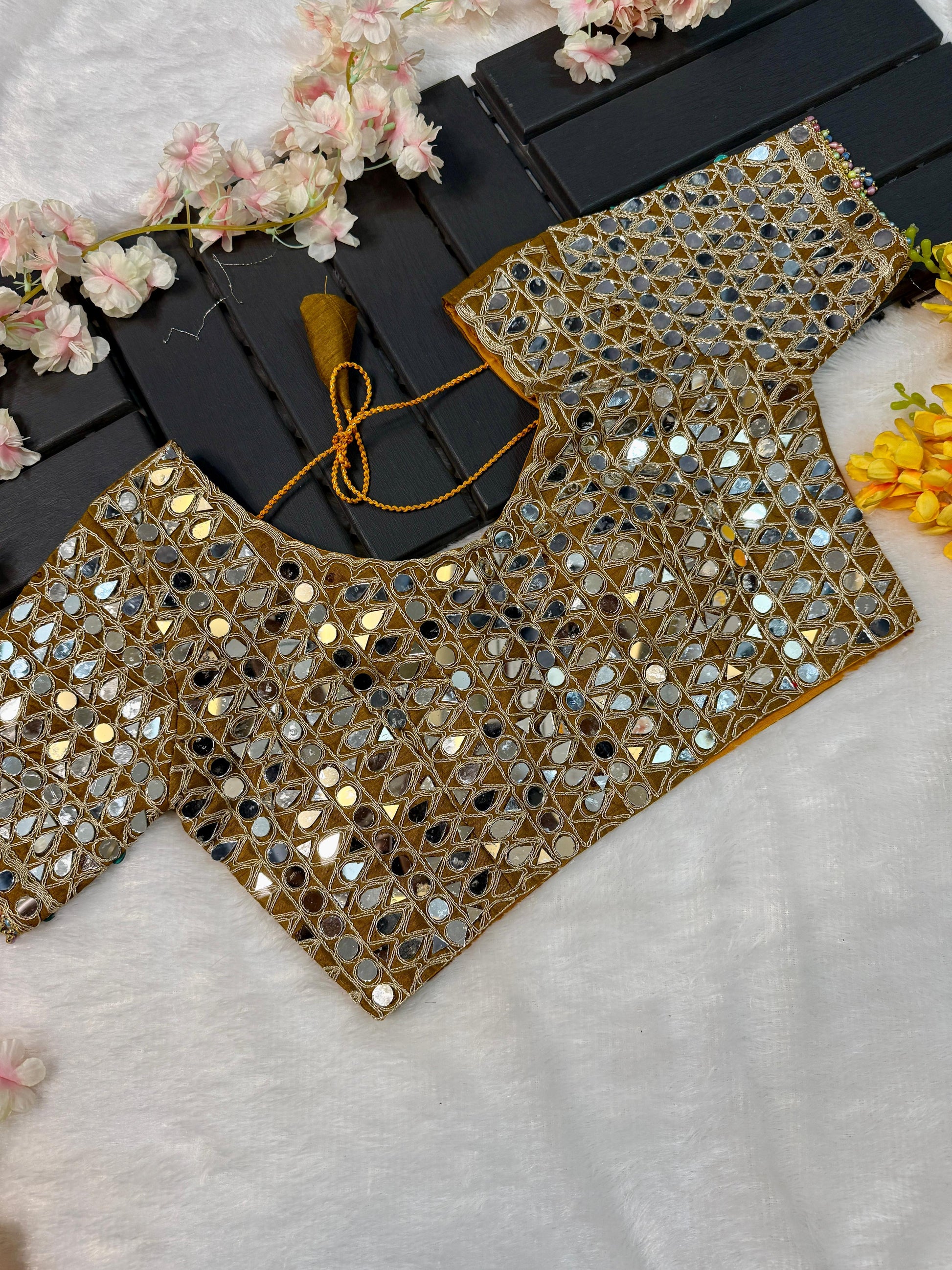 Blouse Details: Fully embellished blouse in a standard stitched fit