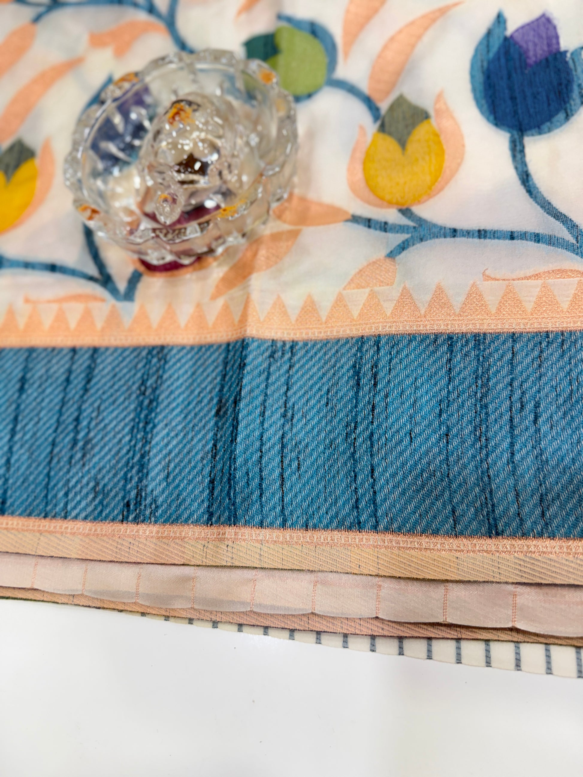 Suitable for pairings with stone jewellery, oxidised sets or minimal gold-tone accessories, this saree is versatile for both modern and traditional styling. It offers the ease of soft-silk comfort with the appearance of fine printed detailing, making it a good choice for everyday festive dressing