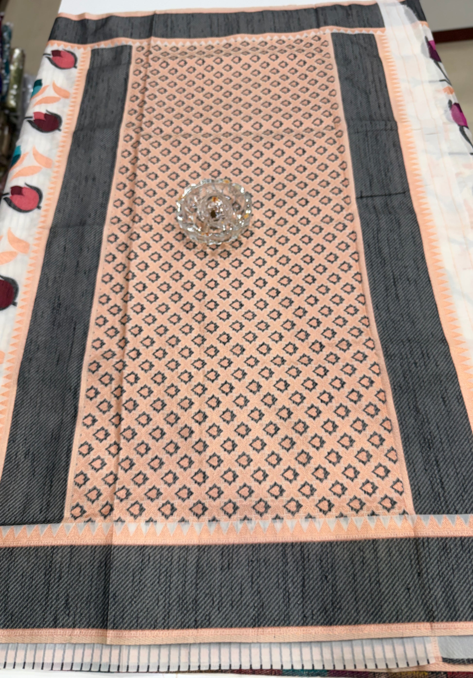 Suitable for pairings with stone jewellery, oxidised sets or minimal gold-tone accessories, this saree is versatile for both modern and traditional styling. It offers the ease of soft-silk comfort with the appearance of fine printed detailing, making it a good choice for everyday festive dressing